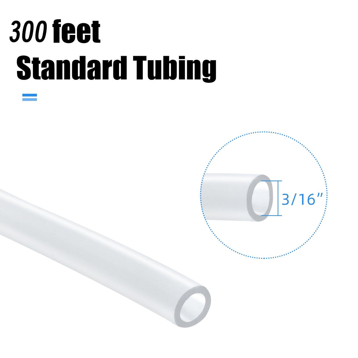 Soft, pliable tubing will not harden Remains kink-resistant for long periods and blending better with aquarium decor Resistant to CO2 corrosion Standard 3/16 diameter common to most airline accessories. INCLUDES: 1 roll of 300 Air Line Tubing Tips for Choosing Tubing of Good Quality Gauge of Tubing Wall The thickness of the wall of our air line tubing is 1mm, 25% thicker than the cheap tubing in the market. Our tubing can bear higher pressure than the cheap ones. Its very important in case of high-pressure application, like in a deep water aquarium or CO2 system. Color The color of our tubing is semi-transparent pure white. This is a sign for the quality of raw material the tubing is made of. Good quality tubing lasts longer, wont turn brittle. This color also makes our tubing blending in the aquarium environment better. The cheap air line tubing in the market usually looks yellowish. They are usually made of low grade material. They wont last long time and turn brittle and more yellowish quickly. The contamination in the low grade material could be hazardous to your fish and plants.