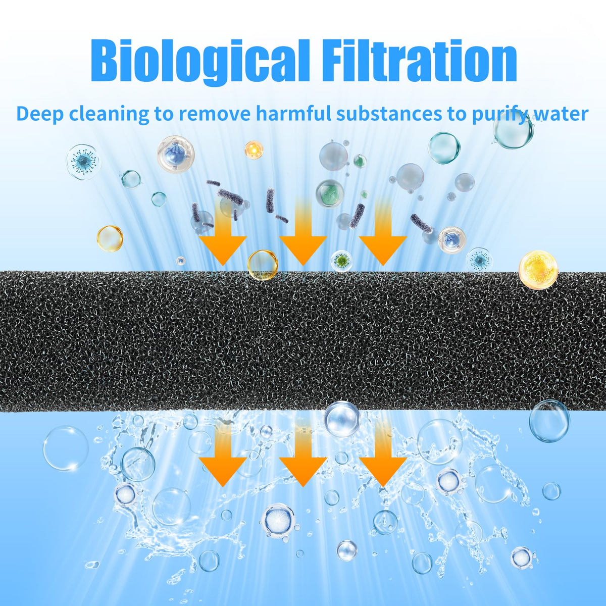 Q: How does the open cell foam design enhance filtration?A: The open cell foam design of the filter pad provides a much larger inner surface area for filtration, which allows it to trap larger bits of waste effectively while maintaining a better water flow rate and reducing the chance of clogging.