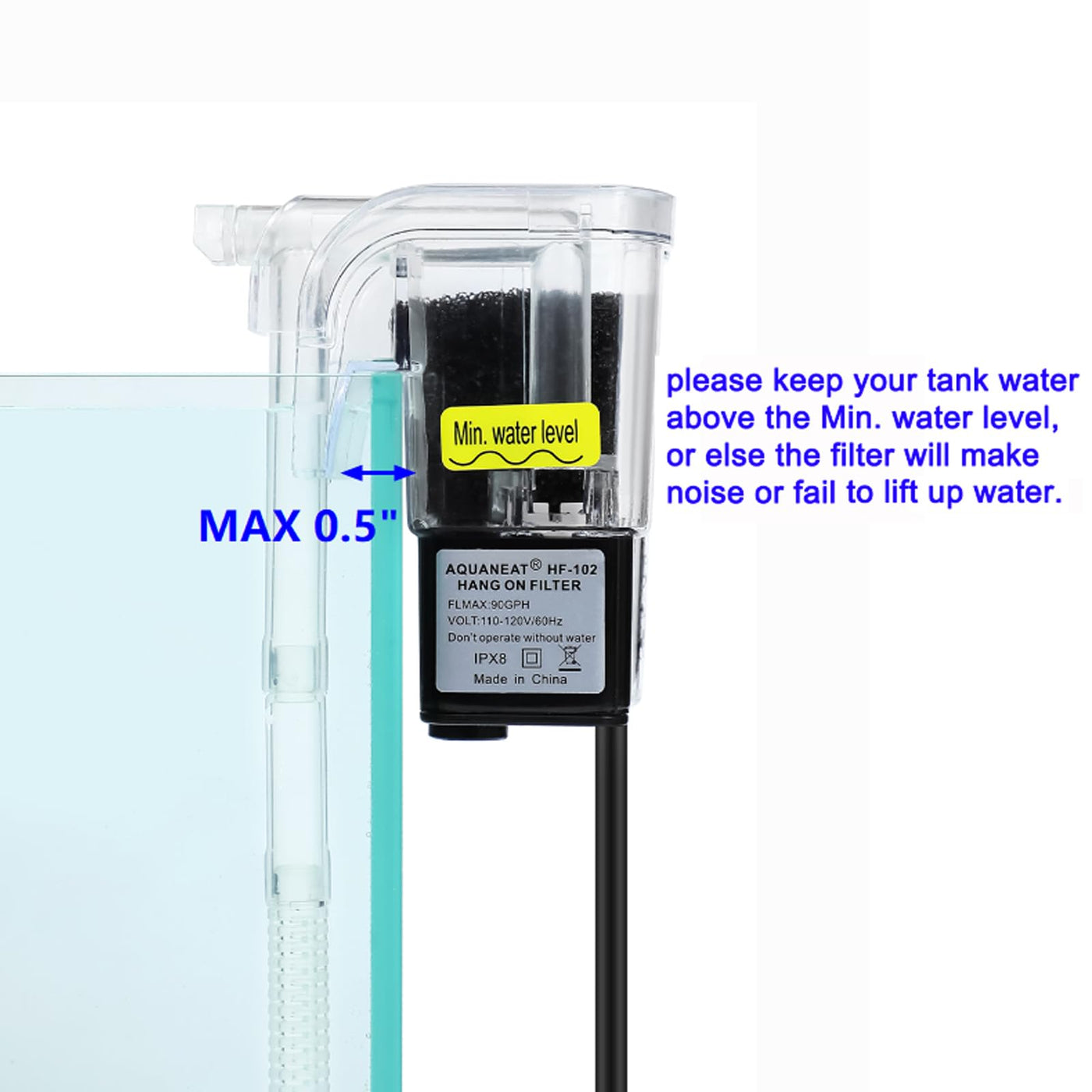 Aquaneat Aquarium Hang On Hob Power Filter 5 Gallon Small Fish Tank Filter 90Gph (Up To 5Gal)