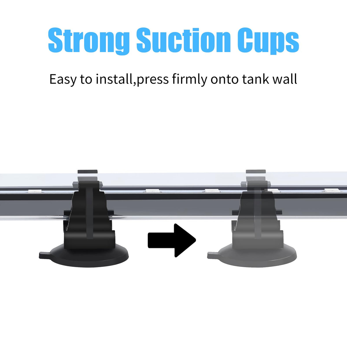 Q: How do I properly install the suction cups for the light?A: To install the suction cups effectively, moisten them before placing the light in your aquarium. This ensures they hold tightly and securely in your desired position.