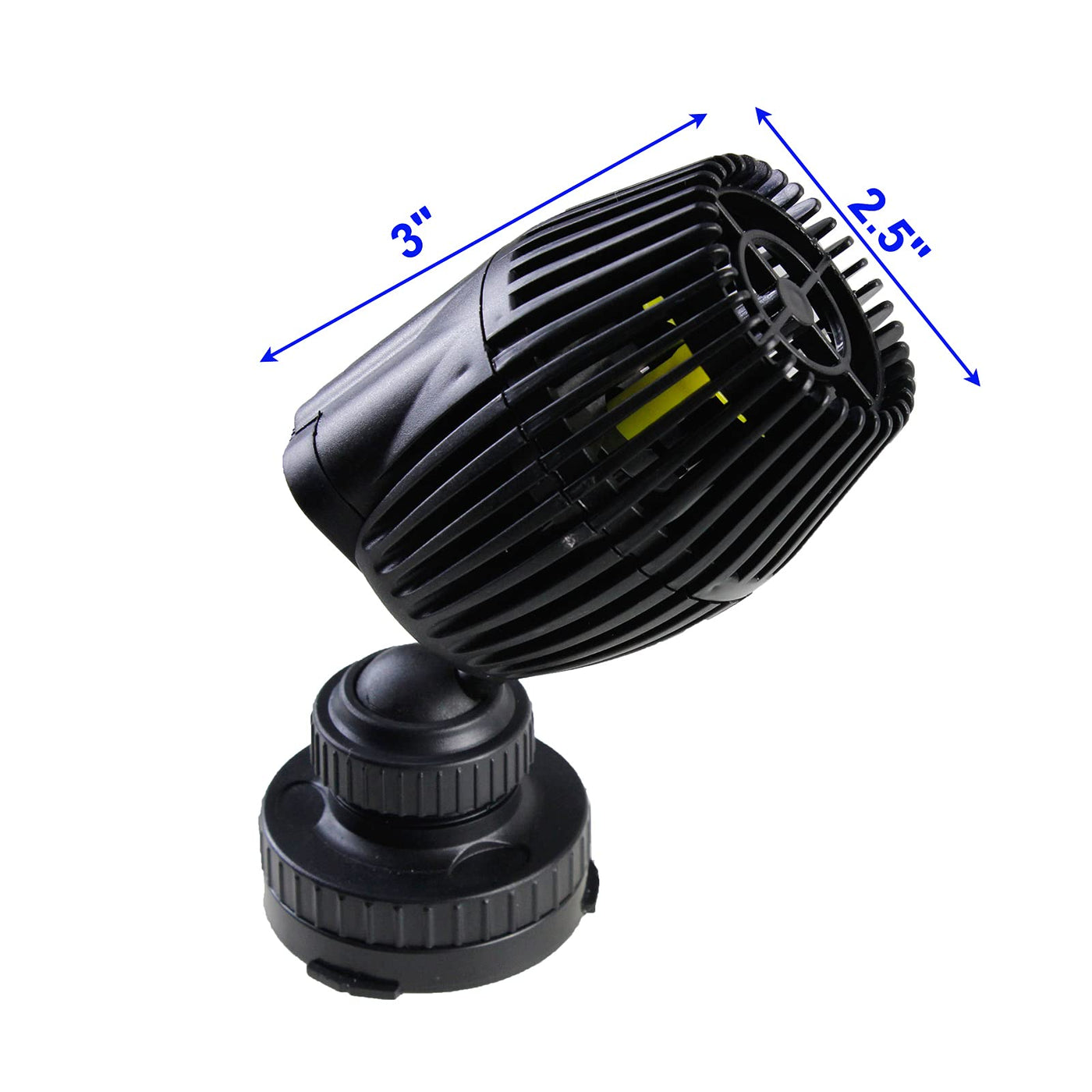 Features: 360 rotation flow directions make it easy to stir up small particles and leftover food to be picked up by the filter eliminating dead spot. Create water movement and agitate the top water increasing the dissolved oxygen for fish, corals and other aquatic plants to thrive. Give the aquarium a natural look with the plants waving back and forth and fish swimming in the current. Fixed by a magnetic base, you can move the pump inside externally, but be careful when installing it, as the magnet is strong. Totally submersible and oil-free motor to avoid pollution to the living circumstance. Ideal for freshwater tank and saltwater tank. Note : Must be totally submersed under water and do not use with a timer or controller. Specifications: Length of power cord: 6ft Voltage: 110V-120V / 60Hz Includes: 1pc Circulation Pump (w/magnetic base)