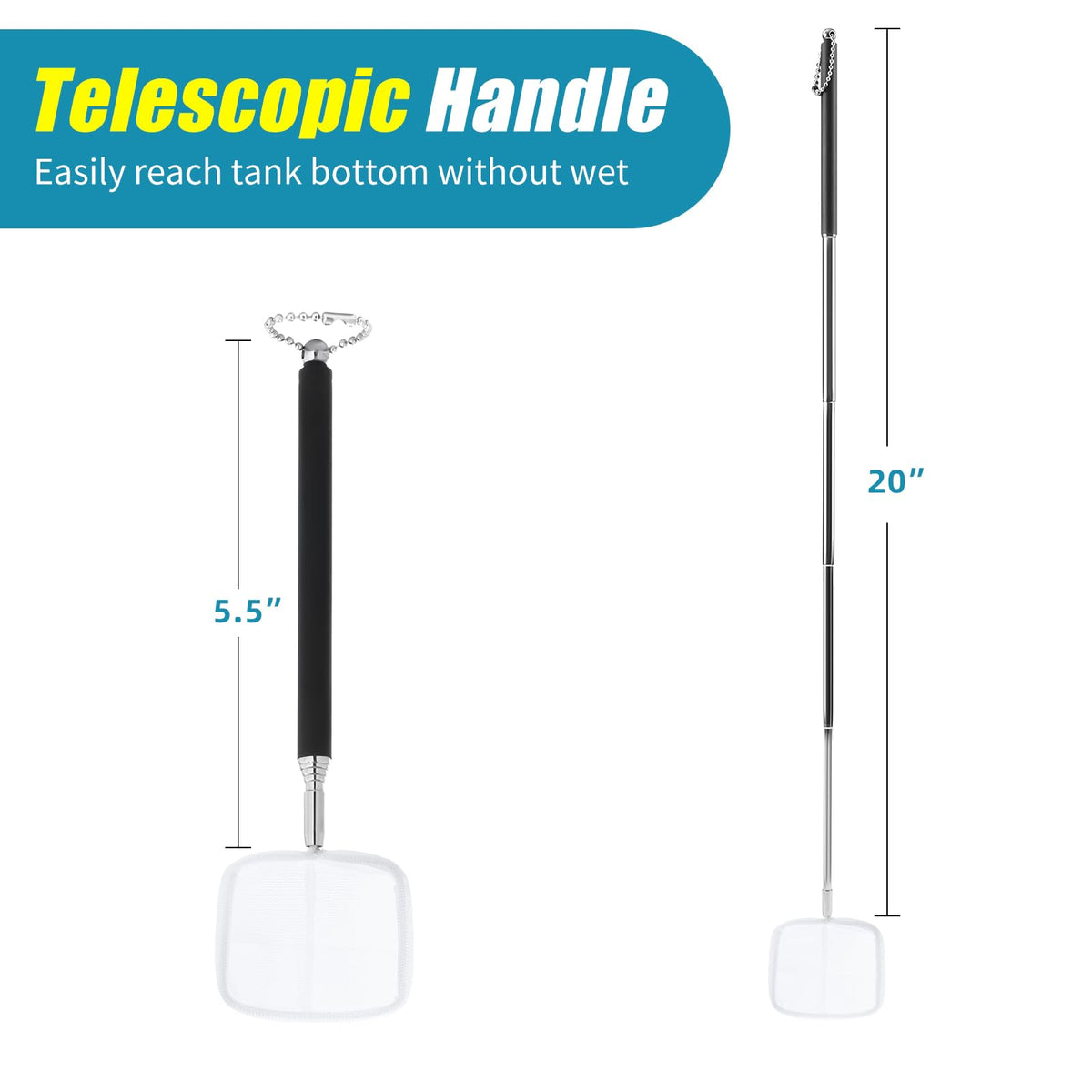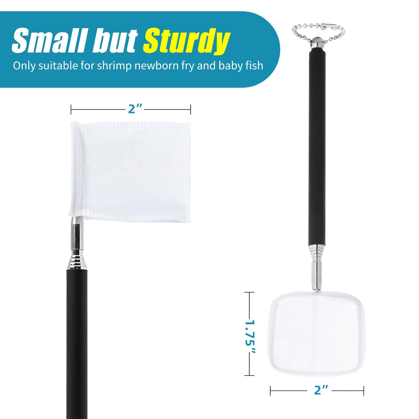 Aquaneat Small Fish Tank Shrimp Net, Aquarium Debris Cleaning Tools, With Extendable Handle, 2 Square