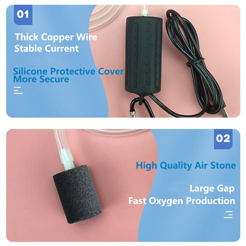 Aquarium Air Pump Mini USB Fish Tank Oxygen Air Pump Portable Ultra Silent Air Aerator Pump Energy Saving Oxygen Bubbler with Ai
