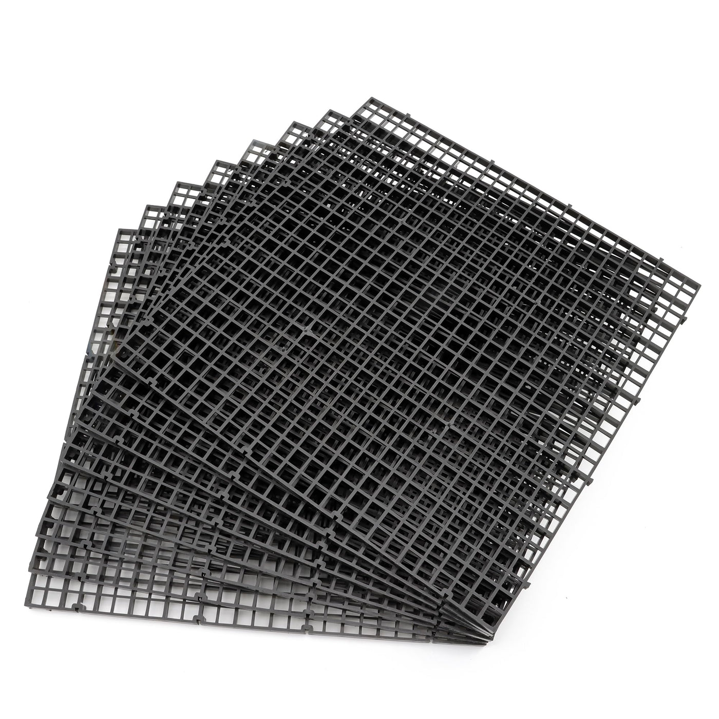 Aquarium Fish Tank Bottom Isolation 8 Pcs, Plastic Egg Crate Grid Divider Tray Egg (L 8pcs Black)