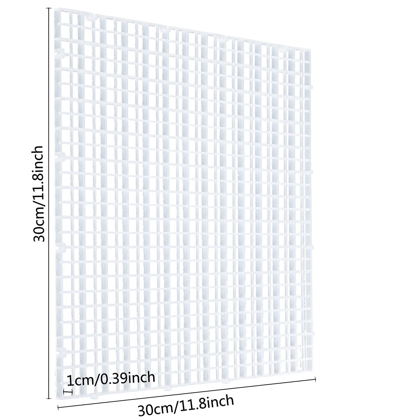 Package include 4pcs aquarium egg crate. Size(L*W): 11.8 inches x 11.8 inches grid: 0.39 inches x 0.39 inches thickness 0.27 inches.