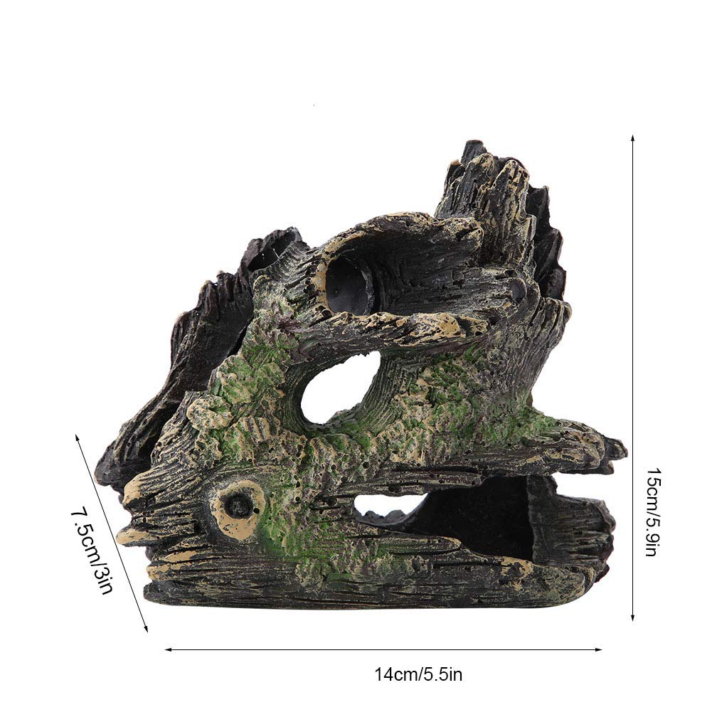Q: How does the Aquarium Tree Stump benefit my fish?A: This aquarium decoration provides shelter and hiding spots for fish, promoting their well-being by creating a more natural habitat. It also offers entertainment venues for fish to explore.
