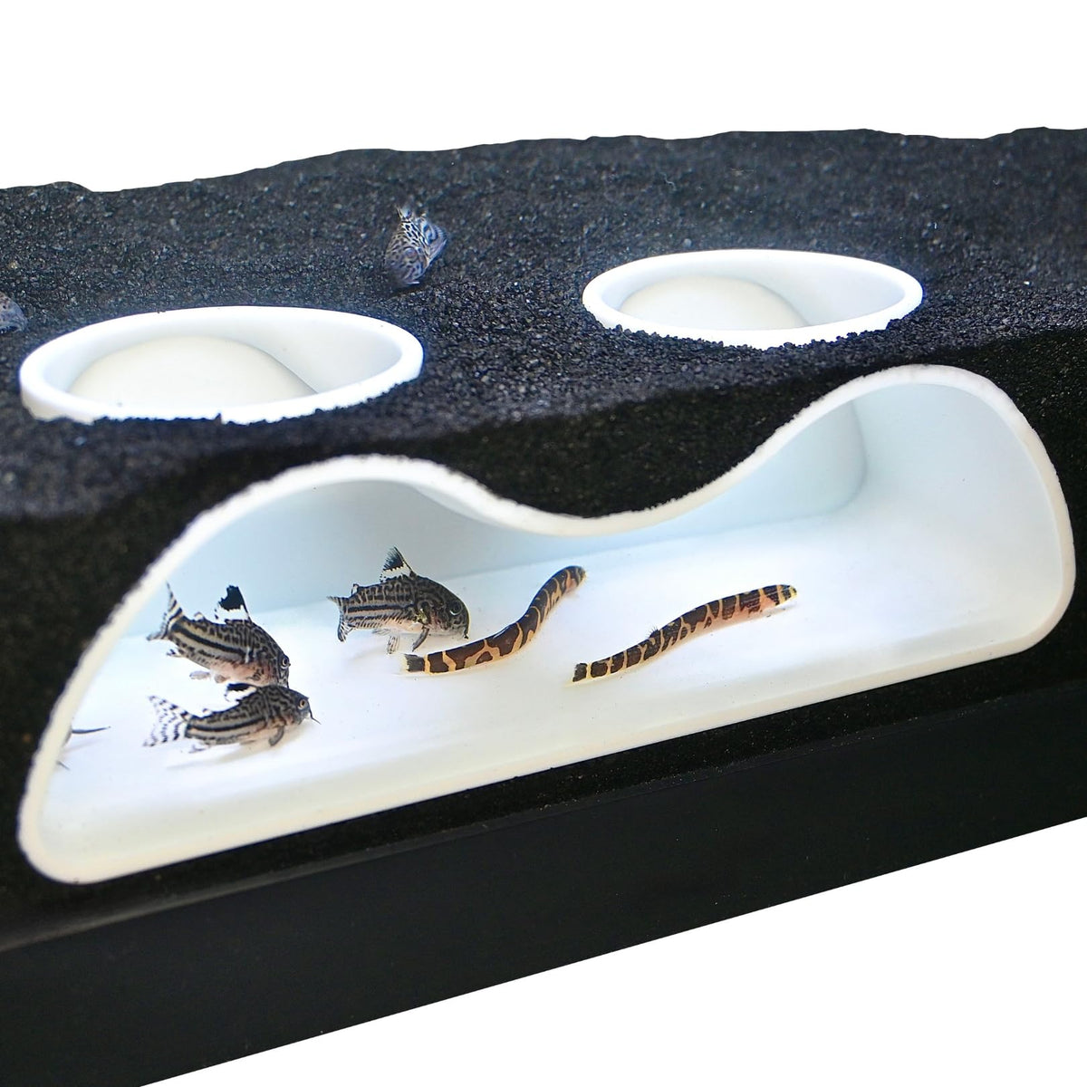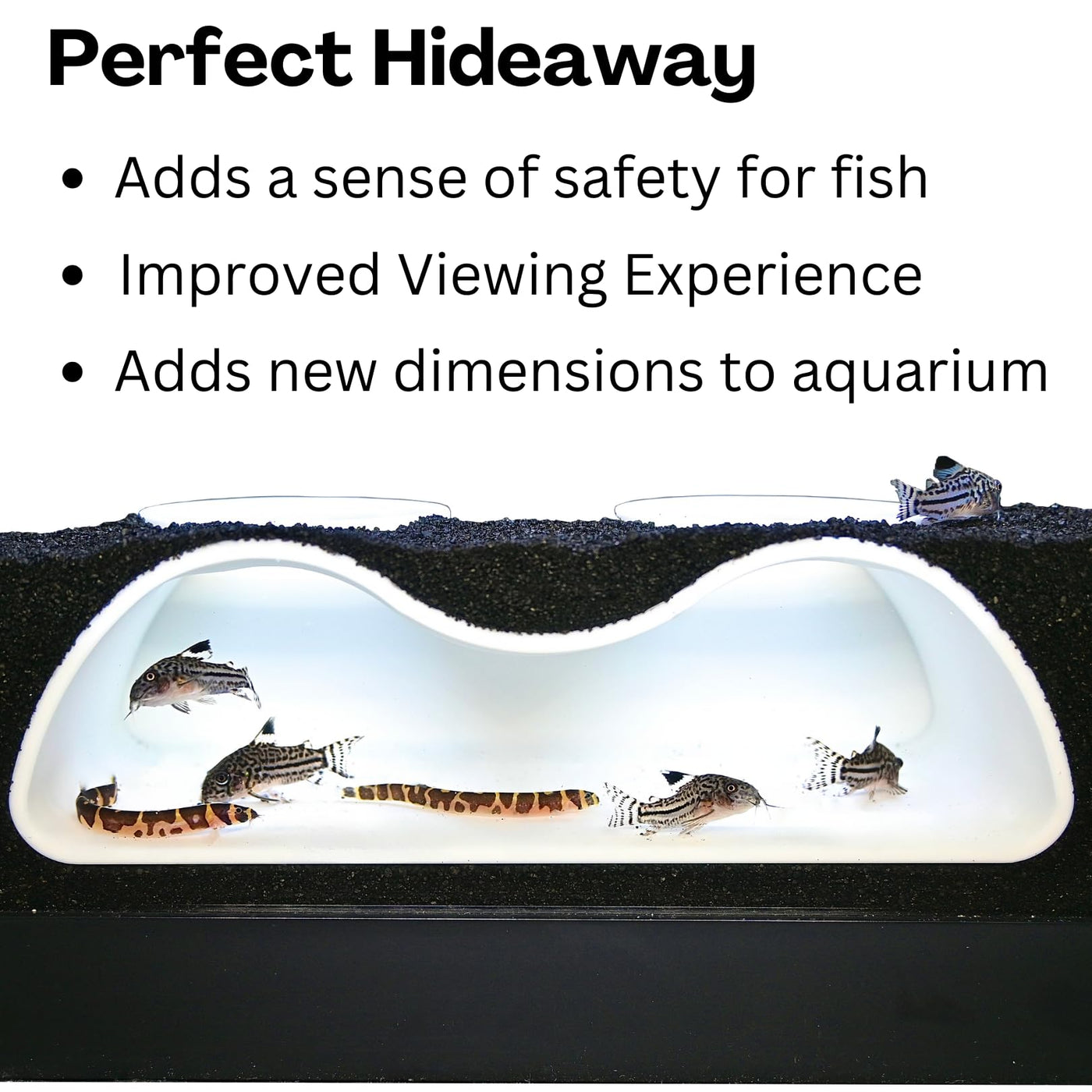 Introducing the Aquarium Underground Natural Curve Tunnel Cave Two Hole! This piece gives bottom dwellers a fun place to explore as they find themselves in a cave. They will also find this new area in their aquarium to be a cozy new place to hideout. The Aquarium Underground Natural Curve Tunnel Cave Two Hole was made with natual cave insirpation in mind. The curve of the aquarium tunnel provides a natural look that blends into the aquatic habitat. While being a great place to hide it also provides an incredible viewing experience for the fish tank owner. This addition to an aquarium aquascape will give the ability to view fish in an entire new way in their natural environment. The Aquarium Underground Natural Curve Tunnel Cave Two Hole is made with aquarium safe plastic. It will also sink to the bottom of the aquarium so no need to try and bury it in the sand if not wanted. The Aquarium Underground Natural Curve Tunnel Cave is perfect fish tank decoration for many different bottom feeders; Cory Catfish (Corydora Catfish), Kuhli Loach, Dojo Loach, Clown Loach, Pleco (Plecostomus), Bristle Nose Pleco, Small Cichlids, Goby, Rainbow Shark, Chinese Algae Eater, Siamese Algae Eater, Shrimp, Mystery Snails, Otocinclus, Eels and so much more!