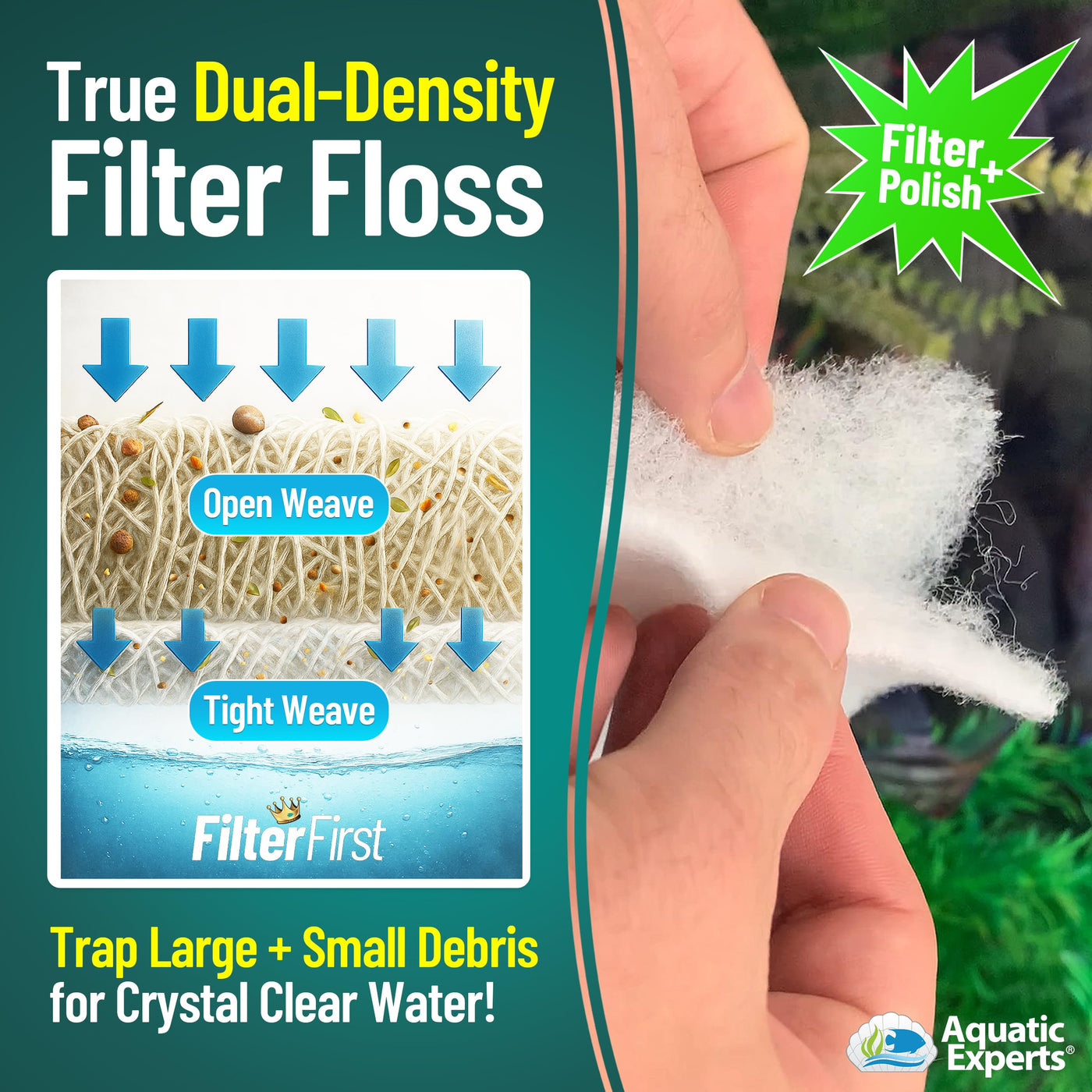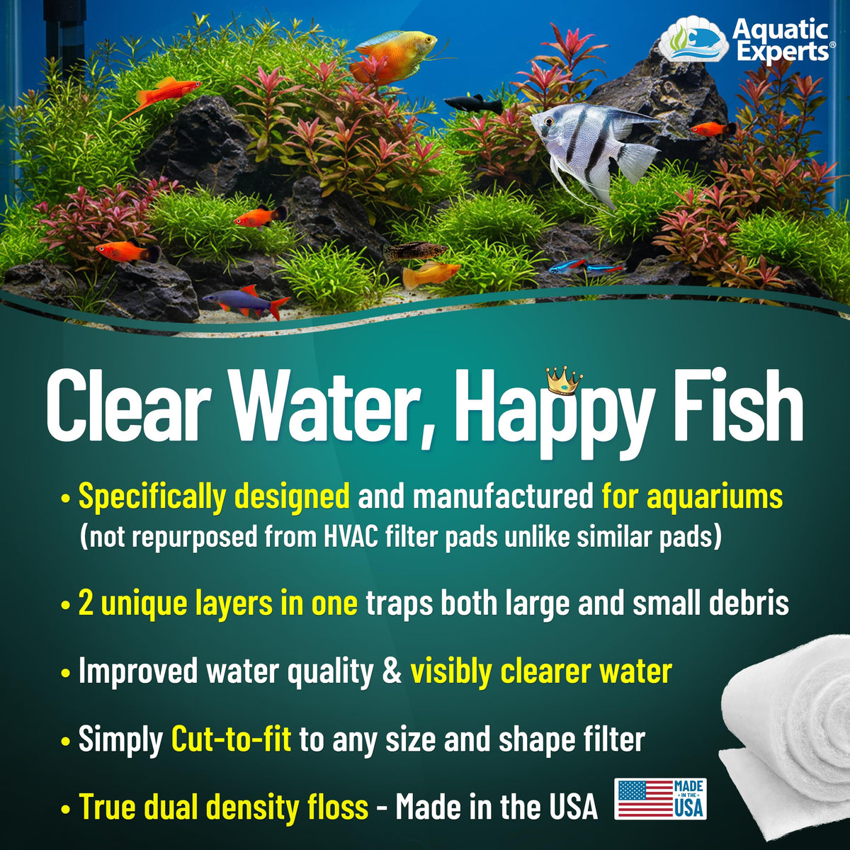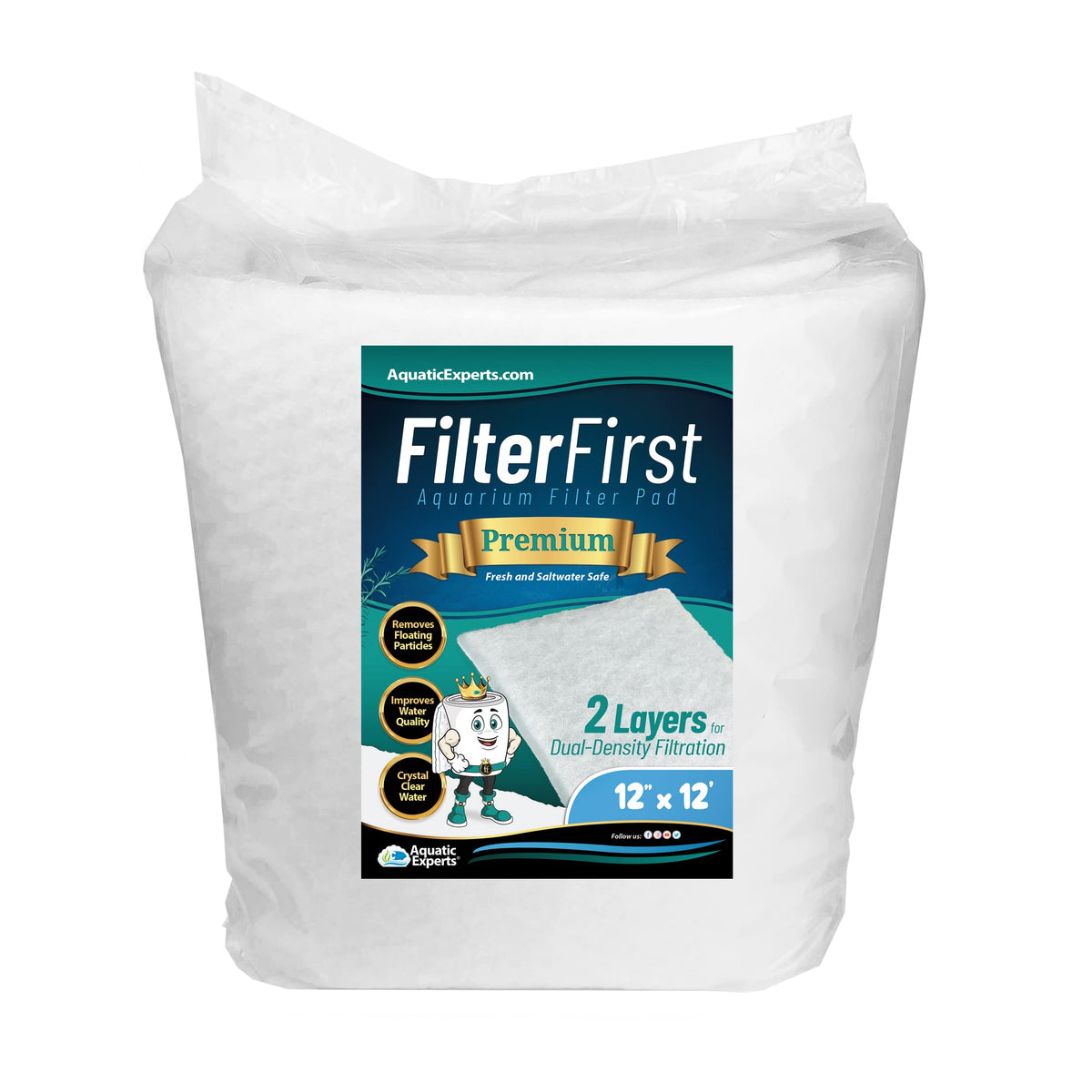 Aquatic Experts Aquarium Filter Pad, FilterFirst Aquarium Filter Media Roll for Crystal Clear Water - Filter Floss for Fish Tank