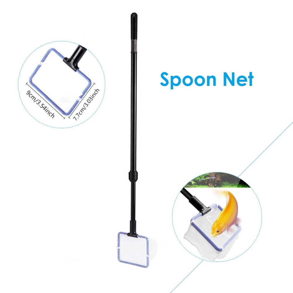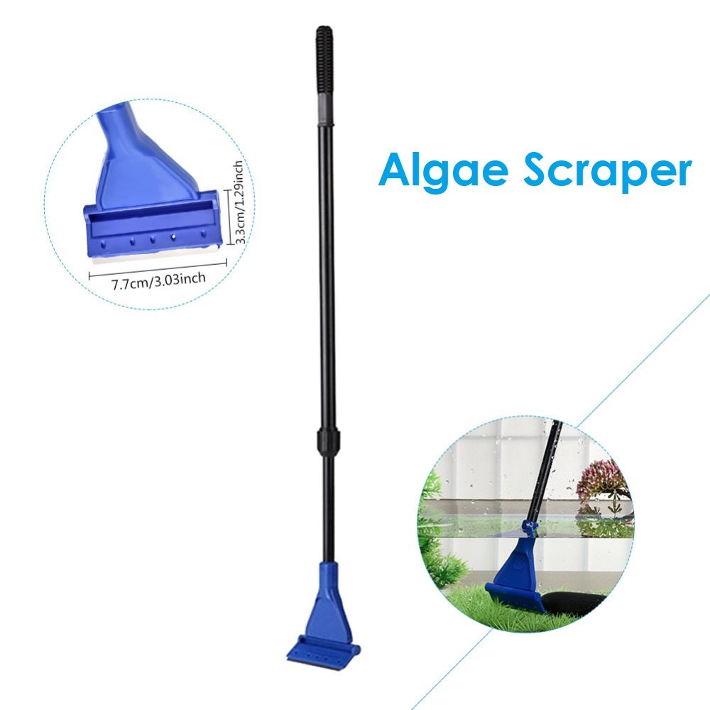 Aquatichi 5 In 1 Aquarium/Fish Tank Cleaning Kit/Tool, Algae Scraper, Fish Net, Sponge, Plant Fork, Gravel Rake, Length 19 Inches (Non-Extendable)