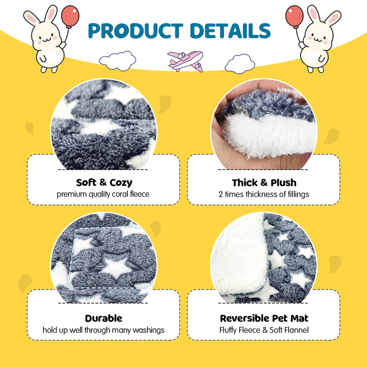 Arctic Eagle Bunny Bed Mat Material: Coral Fleece, Soft PP Cotton Color: Gray & Pink Pattern: Star Size: 10W x 13L Description: Not too large or too small. Specially designed for rabbit, as well as other similar size small animals, such as hamster, rat, guinea pig, etc. Suitable for various occasions: in the cage/cattsle/loft/wooden hideout, under the tunnle/bridge, on the carpet/sofa. Making a cozy home for your pet either indoor or outdoor. Made of high-quality coral fleece and filled with premium PP cotton. As 2 times thick as other brands. A good thickness for absorbing pee and comfort to sleep. Machine washable on gentle cycle in cold water. Good water absorbent and dry fast. 2 pieces in 1 package allows you to take turn laundering. The bedding is always kept clean to ensure the good health of your bunny.