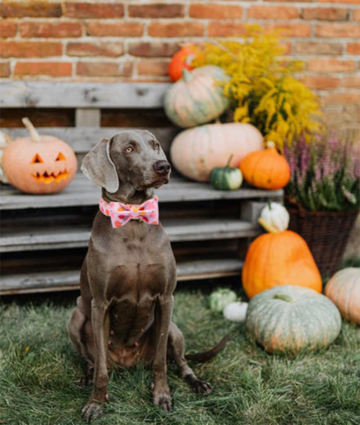Aring Pet Bowtie Dog Collar,Dog Collar With Removable Bow,Adjustable Halloween Pink Pumpkin Dog Collar.