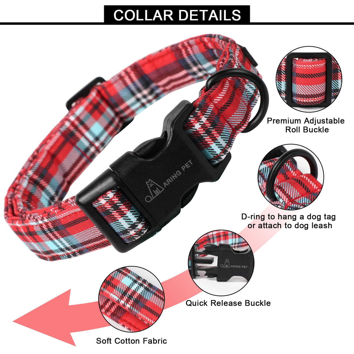 Aring Pet Christmas Dog Collar Cute Red Plaid Dog Collar, Adjustable Cotton Christmas Dog Collars Puppy Collar For Small Medium