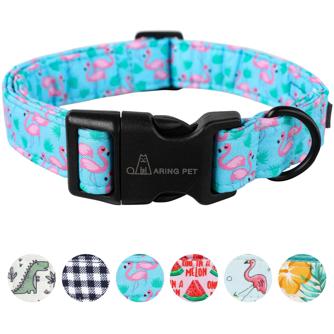 Aring Pet Flamingo Dog Collar-Cute Cotton Medium Dog Collars, Adjustable Lightweight Summer Pet Collars For Small Medium Large Boy And Girl Dogs, Medium