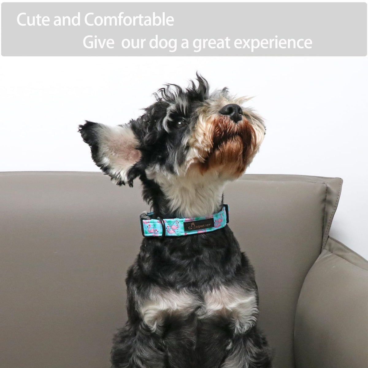 Aring Pet Flamingo Dog Collar-Cute Cotton Small Dog Collars, Adjustable Lightweight Summer Pet Collars For Small Medium Large Boy And Girl Dogs, Large