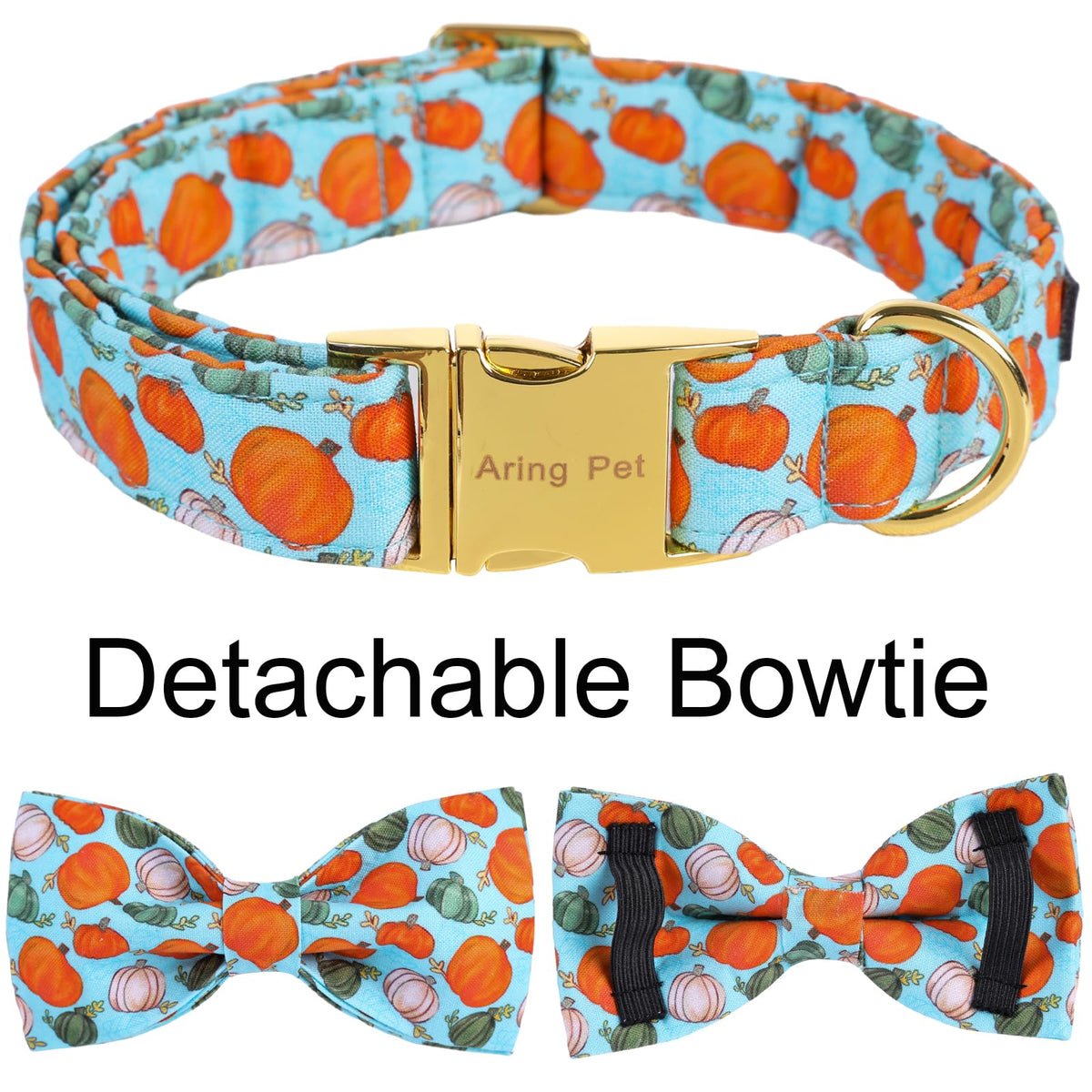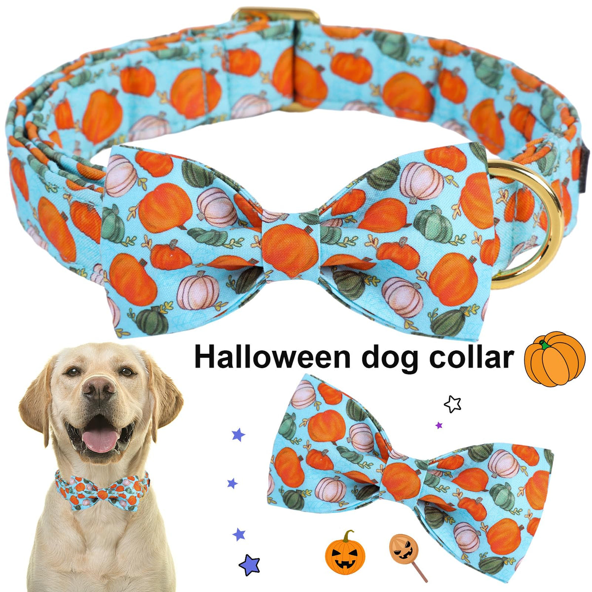 Aring Pet Halloween Dog Collar Cotton Pumpkin Dog Collar With Bow, Adjustable Blue Pumpkin Dog Collars Puppy Collars With Metal