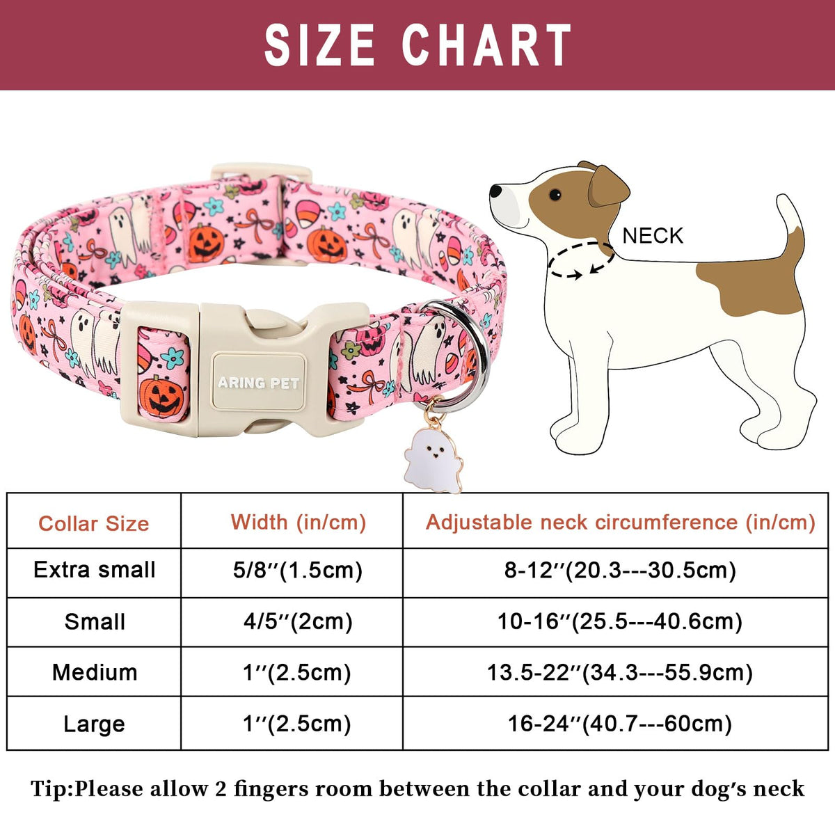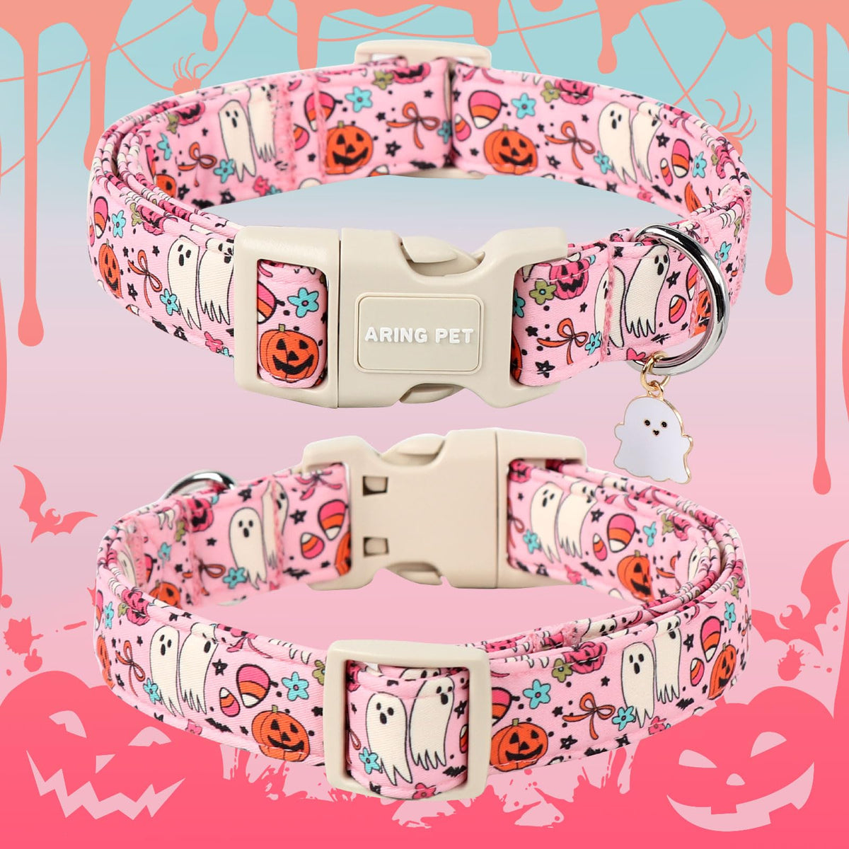 Aring Pet Halloween Dog Collar-Cute Pink Dog Collars, Adjustable Pumpkin Ghost Printed Pet Collars Puppy Collar With Quick Relea