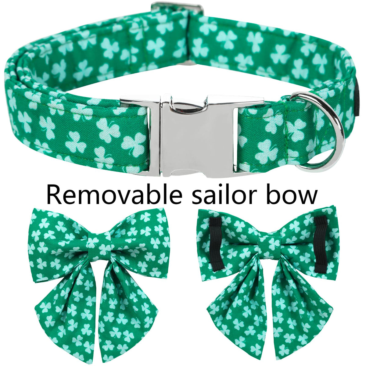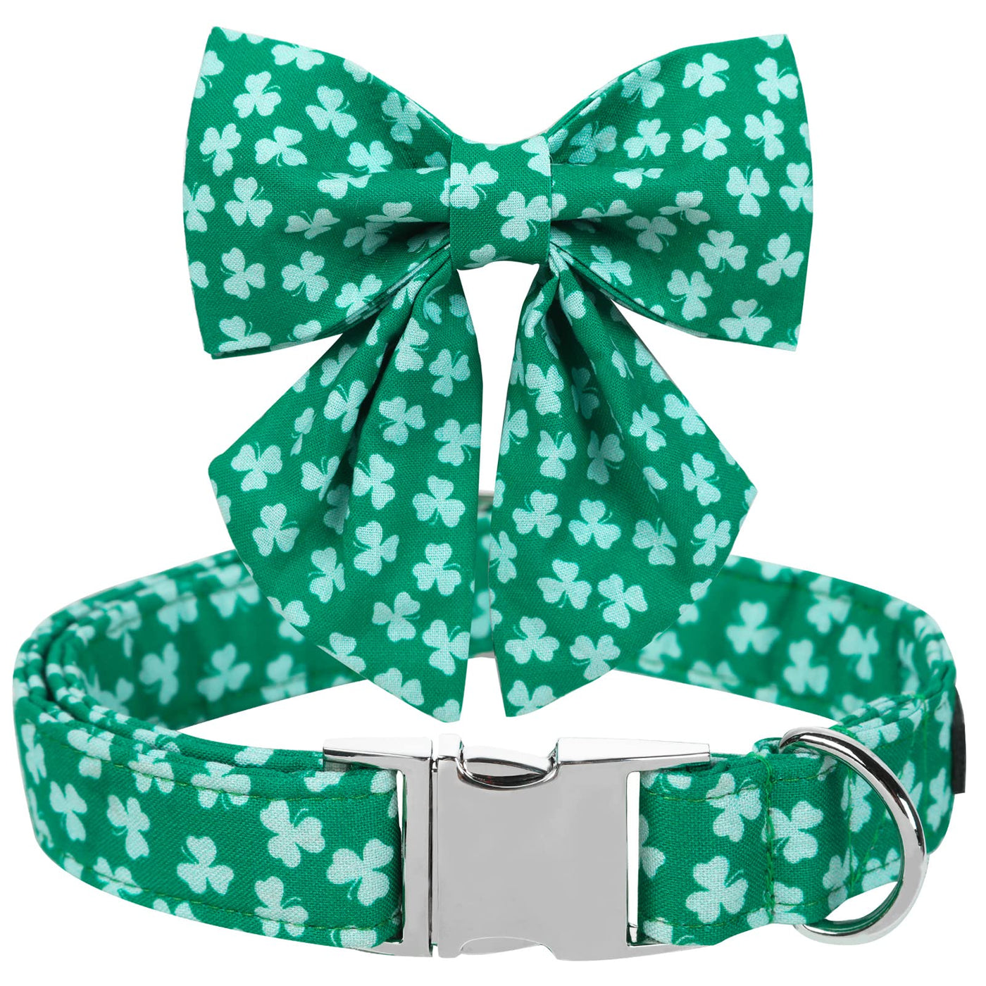 ARING PET St. Patrick's Day Dog Collar-Cute Green Clovers Dog Collar with Sailor Bowtie, Cotton Trefoil Dog Collars with Metal B