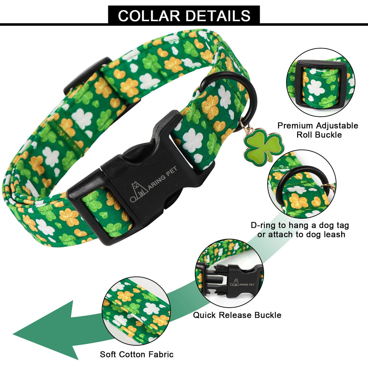 Aring Pet St Patrick'S Day Dog Collar-Cute Green Clovers Dog Collars, Adjustable Shamrock Pet Collars Trefoil Puppy Collar Gifts