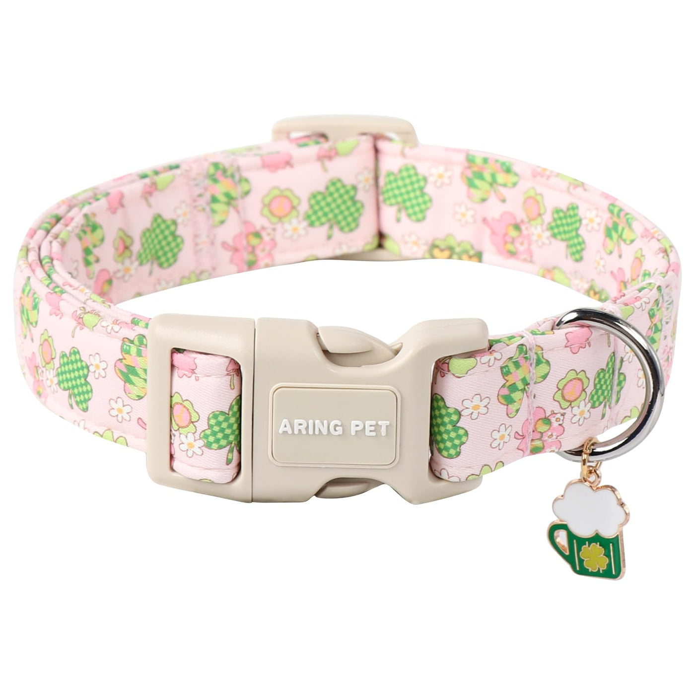 Aring Pet St Patrick'S Day Dog Collar-Cute Pink Clovers Dog Collars, Adjustable Shamrock Pet Collars Trefoil Puppy Collar With Q