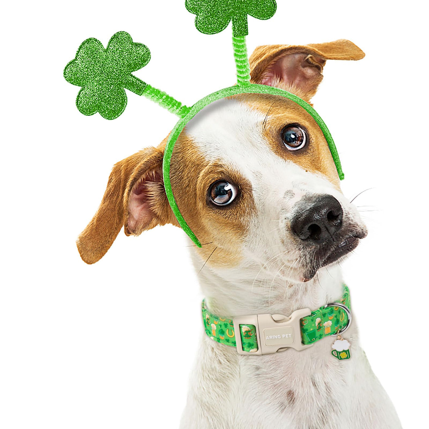 Aring Pet St Patrick'S Day Dog Collar-Green Lucky Clovers Dog Collars, Adjustable Shamrock Pet Collars Trefoil Puppy Collar Gift