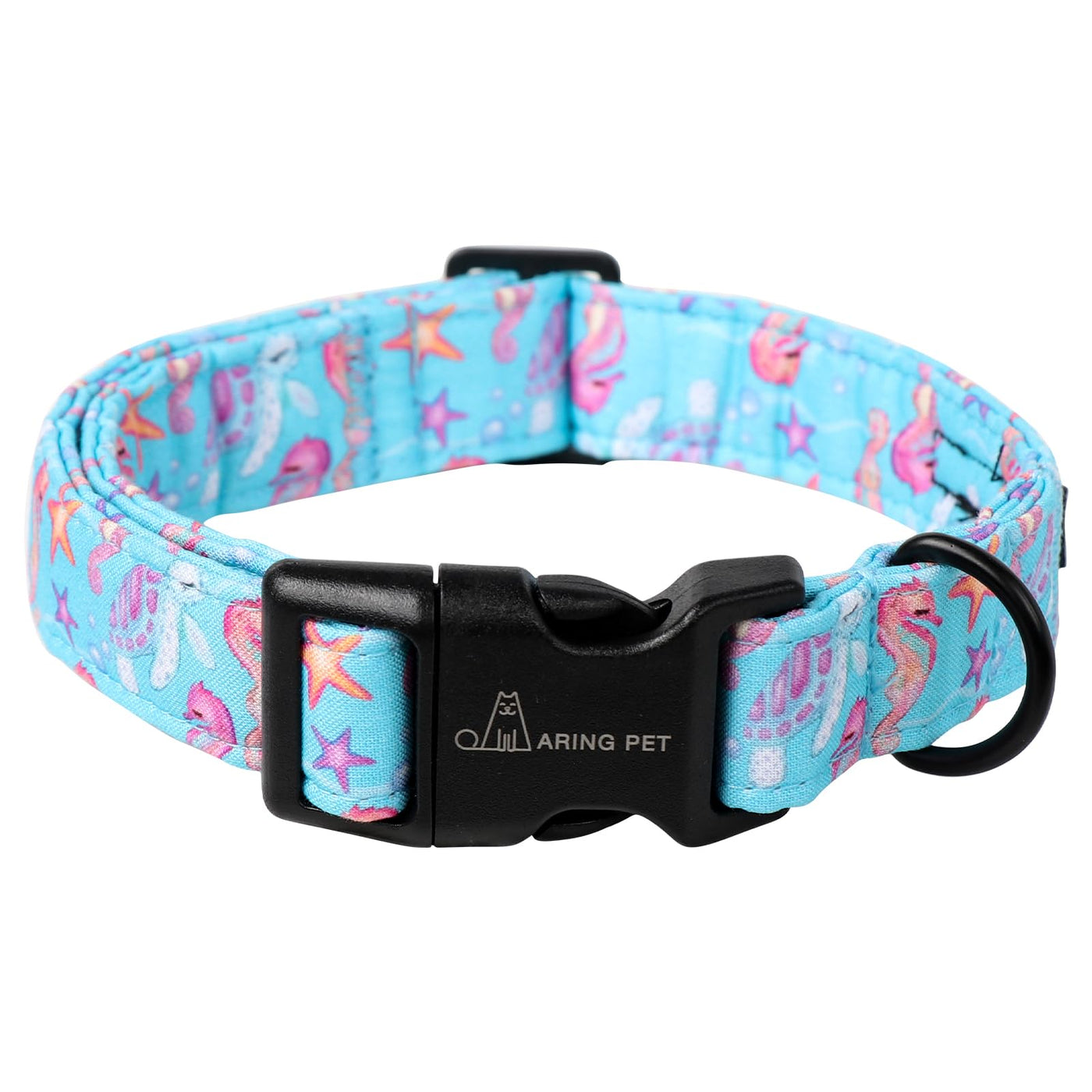 Aring Pet Summer Dog Collar-Cotton Lightweight Blue Dog Collars, Adjustable Seahorse Turtle Pet Collar Puppy Collars With Quick