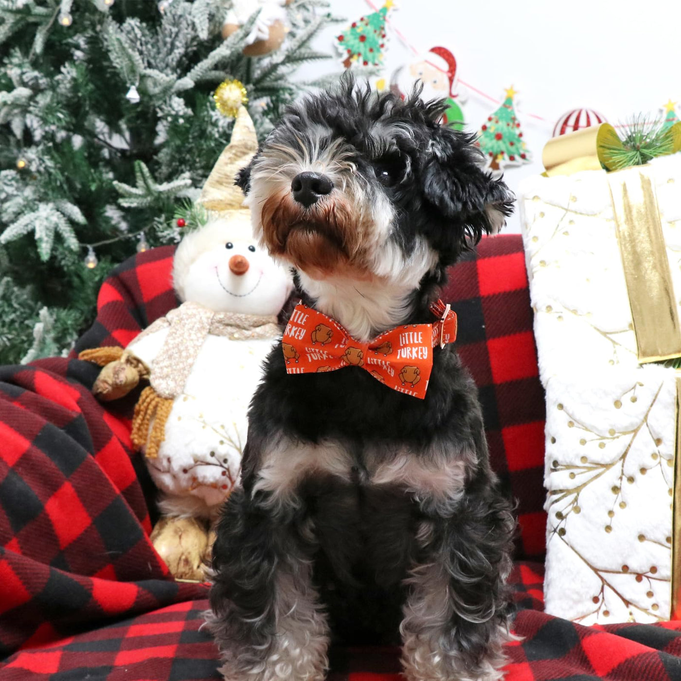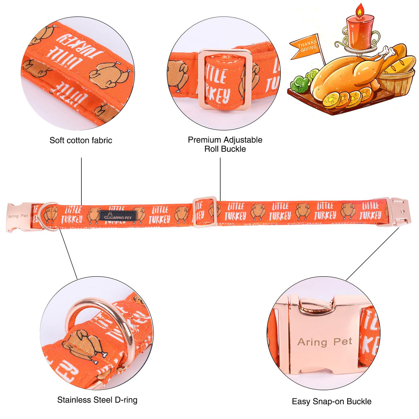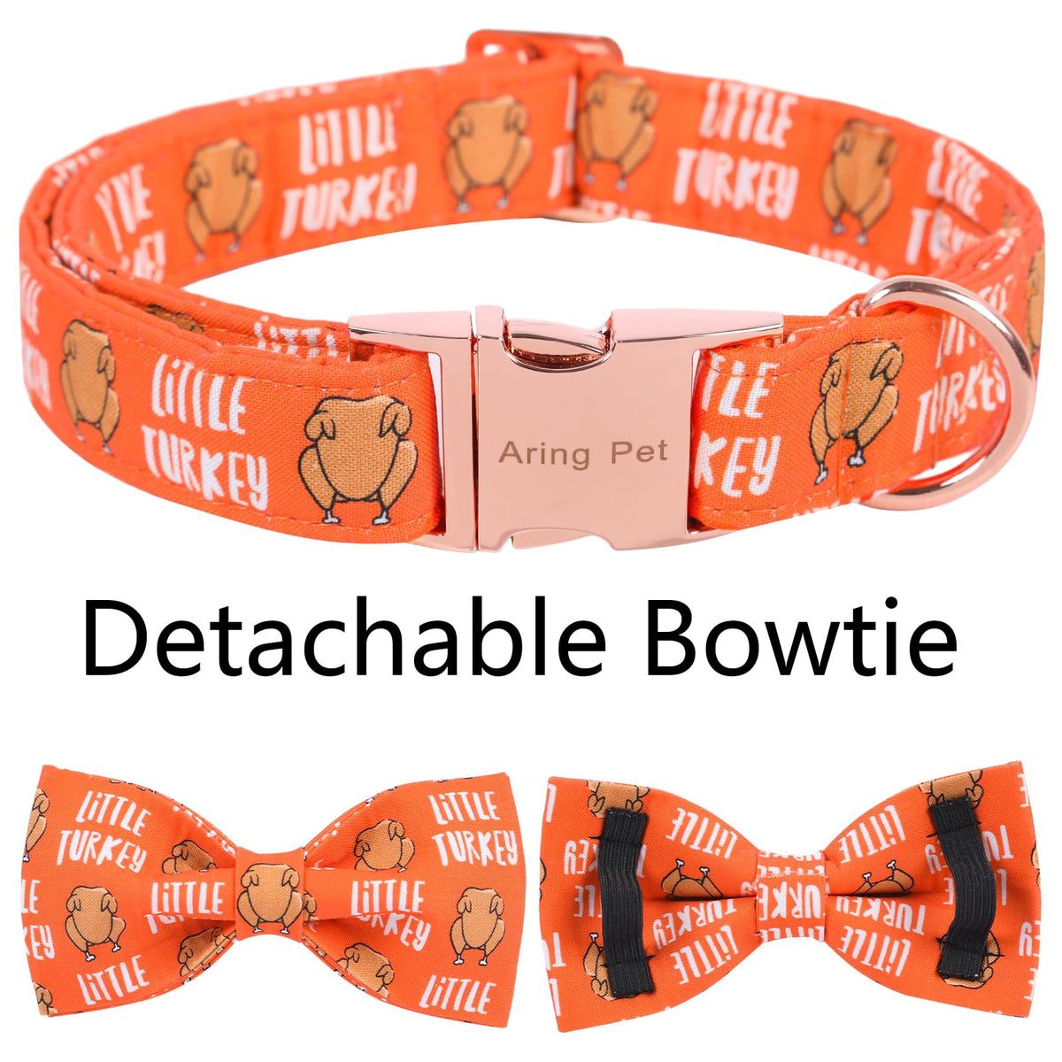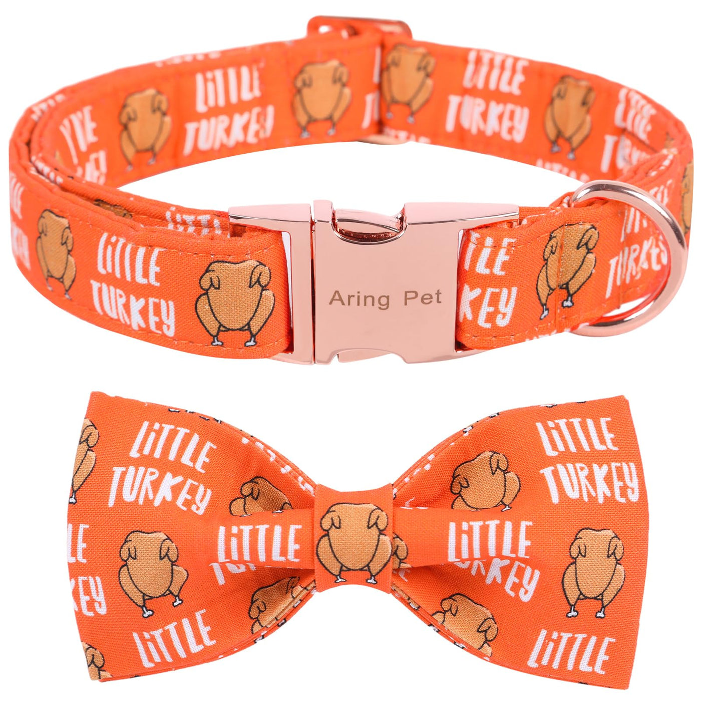 Aring Pet Thanksgiving Dog Collar-Cotton Turkey Dog Collar With Bow, Adjustable Fall Orange Turkey Pet Collars Puppy Collars Wit