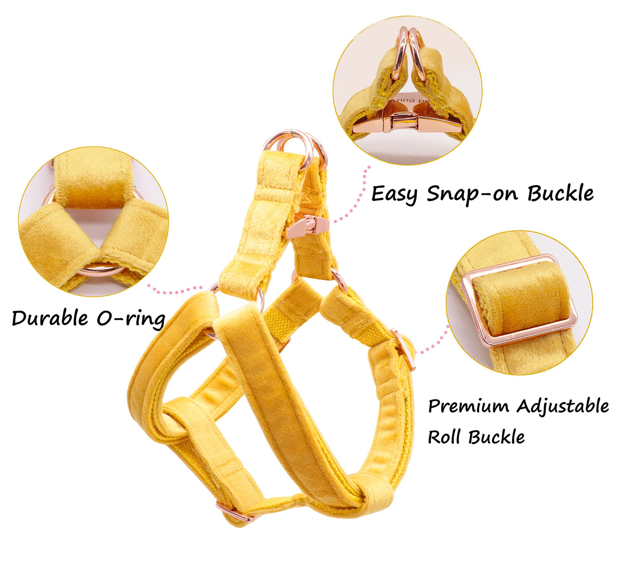 Aring Pet Velvet Dog Halter Harness, Small, Yellow, Elegant And Vibrant, Unique And Safe Design, Durable Metal Buckle