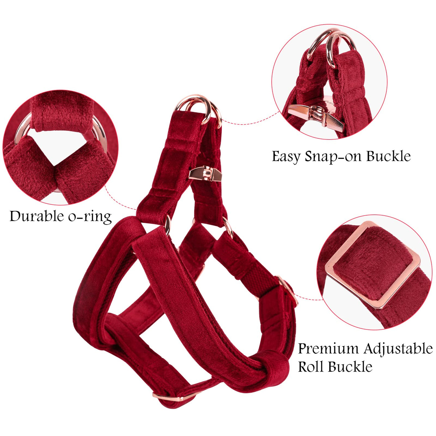 Aring Pet Velvet Dog Halter Harness-Soft Heavy Duty Dog Halter Harness, Adjustable No Pull Red Velvet Dog Harness For Small Medium Large Dogs