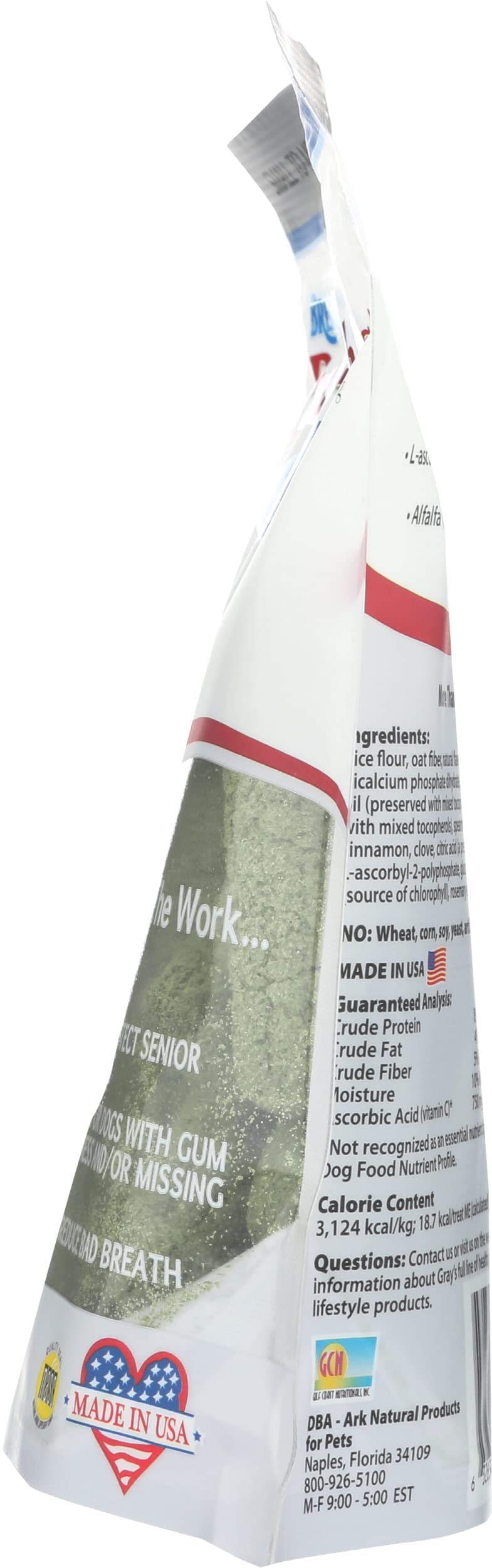 Q: Are the ingredients in Ark Naturals Gray Muzzle safe for my dog?A: Yes, the ingredients used in Ark Naturals Gray Muzzle Brushless Toothpaste are all-natural and carefully crafted in the USA. The chews are corn-free, soy-free, and wheat-free, containing no artificial colors or preservatives, making them safe for your senior dog.