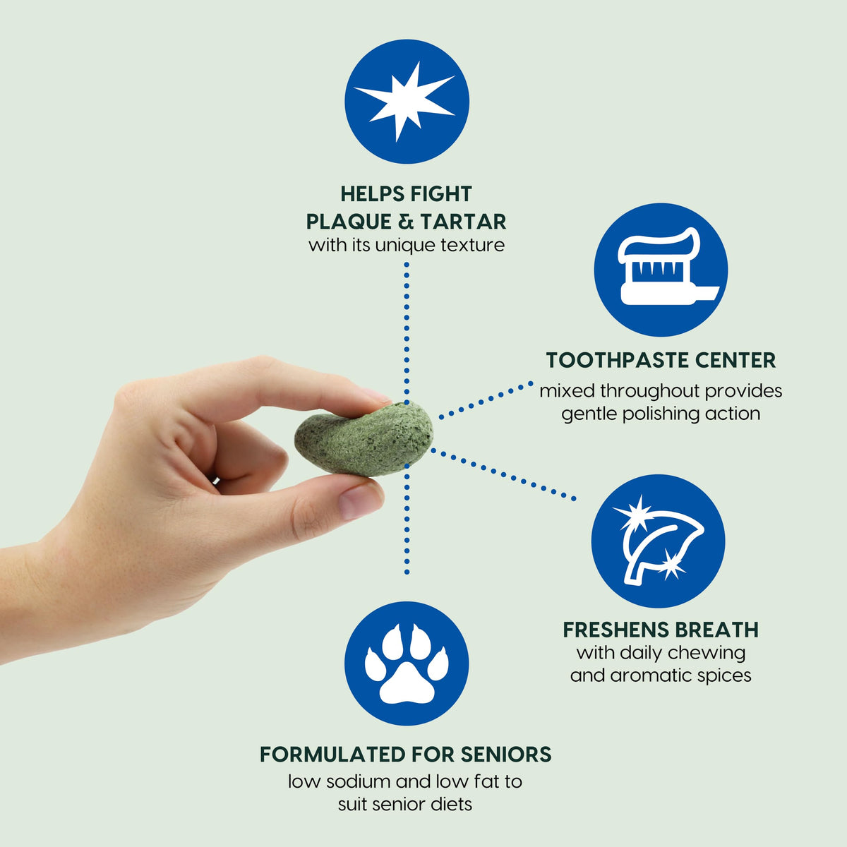 Q: How do I store the Brushless Toothpaste dental chews?A: To maintain freshness and quality, store Ark Naturals Gray Muzzle Brushless Toothpaste in a cool, dry place. Ensure the package is properly sealed after each use to prevent moisture and preserve the chews.
