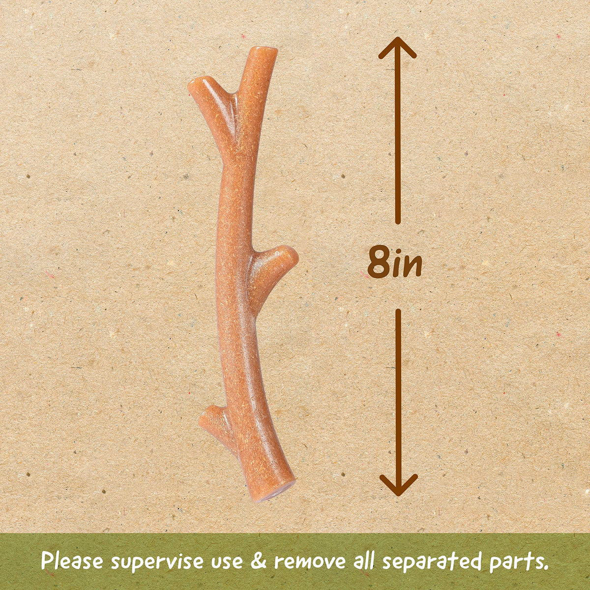Q: How should I supervise my dog while using this chew toy?A: It's recommended to supervise your dog during playtime with the Barkies Tree Branch to ensure safe usage. Always inspect the toy for any signs of wear and remove it if any parts become separated to prevent accidental ingestion.