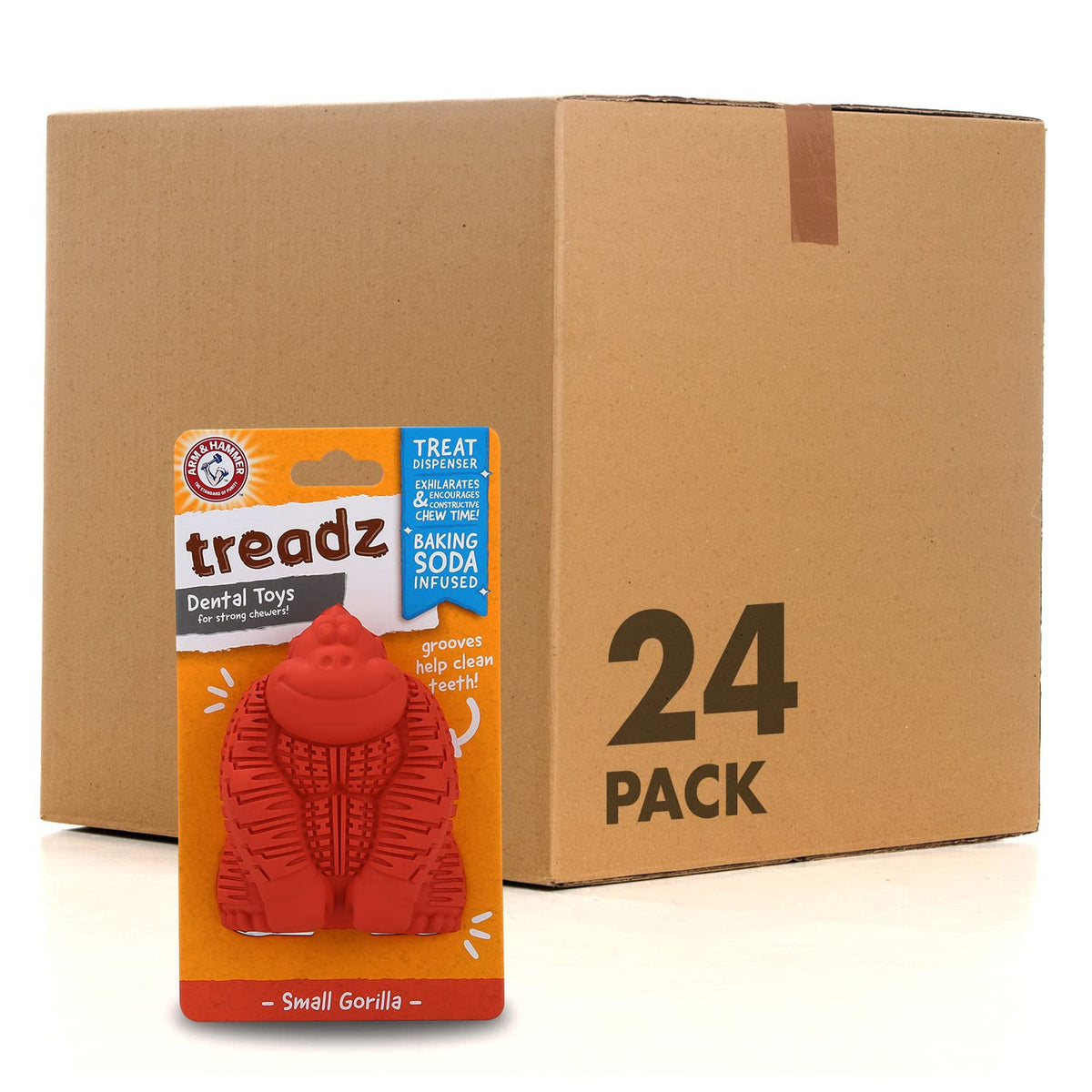 Arm & Hammer For Pets Super Treadz Mini Gorilla Dental Chew Toy For Dogs, 24 Pack | Dog Dental Chew Toys Reduce Plaque & Tartar Buildup Without Brushing | For Dogs Up To 25 Lbs