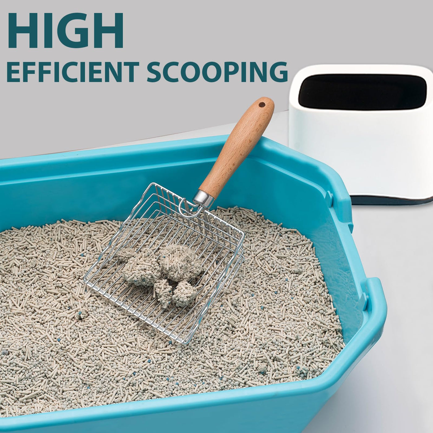 Metal Cat Litter Scoop With Holder, Poop Scooper With Stand And 2 Rolls Of Garbage Bags, Heavy Duty Stainless Steel Shovel With Wooden, Kitty Quick Sifter For Easy Cleaning, Essential Items For Cats