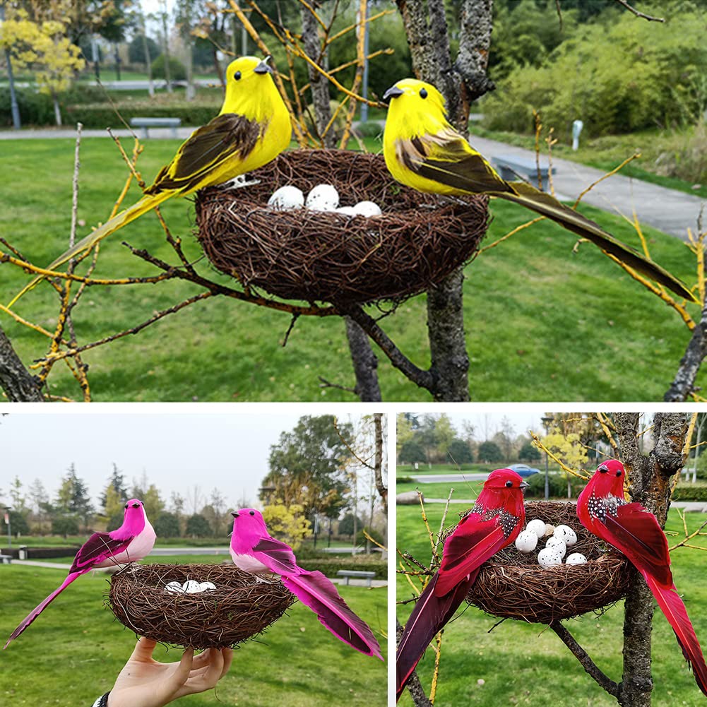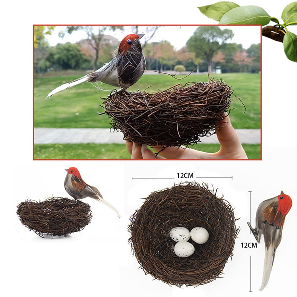 Artificial Bird Nest with Bird and Eggs, Artificial Feathered Birds Nest Eggs Easter Decor Home Ornament for Home Garden Decorat