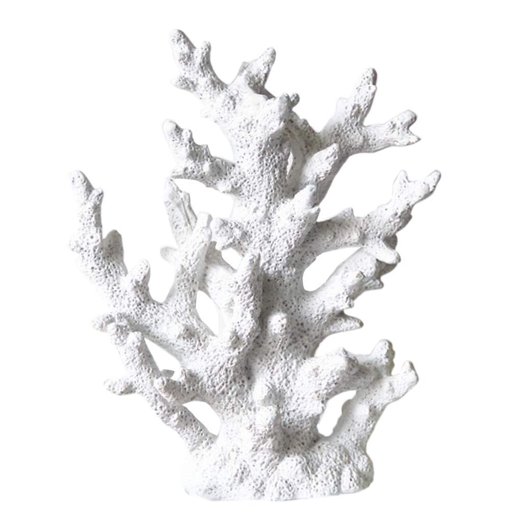 Artificial Coral Ornament Underwater Sea Plants Decorations Craft Resin Aquarium Plants Coral Fish Tank Decorations - White