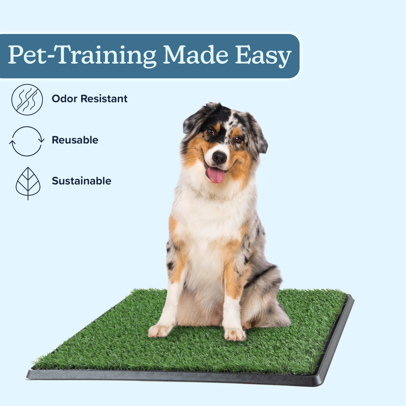 The Artificial Turf Dog Litter Box By Petmaker Makes Potty Training Easy. The Washable Pee Pad And Tray Are Designed To Provide An Acceptable Place For Your Best Friend To Relieve Themselves In Your Home Or On A Balcony Or Patio. The 3-Layer Indoor Dog Potty Sits On Top Of A Secure Plastic Drainage Insert That Allows Liquid To Empty Into The Durable Collection Tray To Avoid Messes And Spills. Use This Artificial Grass For Dogs As A Greener Solution To Disposable Potty Pads For Small-Sized Pets That Are Unable To Make It Outside For Any Reason. Its Perfect For Housebreaking Puppies, Elderly Pets, Apartment Living, Or Inclement Weather. Important: Petmaker Is Committed To Providing The Consumer With The Absolute Best Price And Value On All Of Our Products. Note: This Is An Exclusive Product Of Petmaker And Only Puppy Pads By Petmaker Are Guaranteed To Be Genuine. Avoid Buying Counterfeit Products And Transacting With Unauthorized Sellers. Petmaker Is A Registered Trademark Protected By U.S. Trademark Law And Will Be Vigorously Defended.