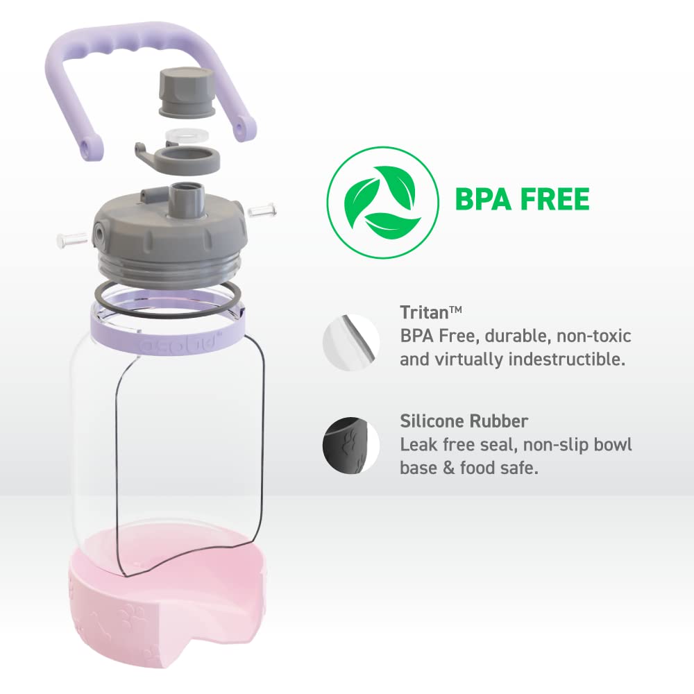 Asobu Barkley Tritan Bottle 50 Ounce With A Detachable Silicone Dog Bowl (Pink)