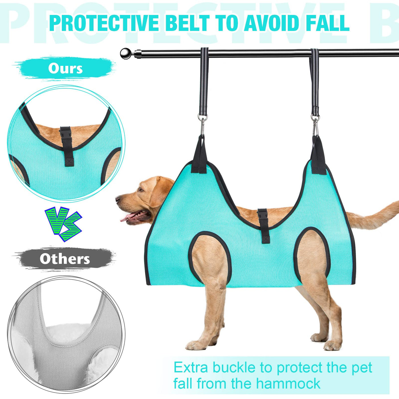 If Your Pet Is Particularly Active, Additional Tools Are Needed To Secure Them. ? Improve Your Style And Life With The Pet Grooming Hammock Harness!This Dog/Cat Lifting Harness Is Perfect For Bathing, Washing, Trimming, Administering Medicine, Cleaning Teeth And Ears, And Applying Eye Drops For Dogs And Cats. It Helps To Keep Your Pet Calm And Secure, Making The Grooming Process Easier For Both You And Your Furry Friend.? Easy To Usesimply Unfold The Grooming Hammock Helper On A Table.Place Your Pet'S Legs In The Leg Holes.Wrap The Hammock Around Your Pet And Sling It With The Hanging Sling Onto A Round Pole.? Comfortable, Breathable, And Durableour Dog Hammock Helper Is Made Of Mesh Textile Material That Is Comfortable And Breathable. It Is Also Easy To Clean/Wash After Use. The Breathable Grid Grooming Sling Is Made Of High-Density Knitted Fabric Material, Making It Very Durable.====================================Suitable For Cats &Amp; Dogsthe Spacing Between The Front And Rear Legs: 6.5 Inchweight : Under 15 Lb====================================? Perfect Combination? 1 X Dog Grooming Hammock Helper? 1 X Nail Clipper? 2 X Hanging Sling? Helpful Tips&Nbsp;If Your Pet Is Particularly Active, It May Be Necessary To Use Additional Tools To Secure Them During Grooming.