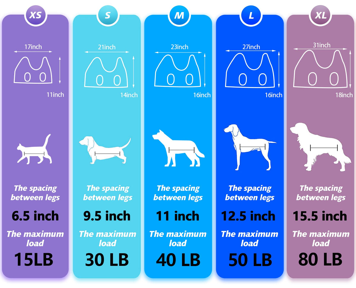 ? Better Style, Better Life with the Pet Grooming Hammock Harness!When bathing, washing, trimming, taking med1cine, cleaning teeth and ears, eye drops for dogs & cats, this dog/cat lifting harness is a perfect choice to keep them calm down and make both you and your dog secure.? Easy To Use1. Unfold the grooming hammock helper on table;2. Put your dogs/cats legs in the leg holes;3. Wrap it up and slung it with the Hanging Sling on a round poles.? Comfortable and breathable. Easy to clean and durableOur dog hammock helper is made of mesh textile material, Comfortable and breathable. After using, its easy to clean/wash. The breathable grid grooming sling is made of high-density knitted fabric material, so it very durable.====================================Suitable for Cats & Tiny Dogs (XS) The spacing between the front and rear legs: 6.5 inchWeight : under 15 lb====================================? Perfect Combination? 1 x Dog Grooming Hammock Helper? 1 x Nail Clipper? 1 x Nail File? 1 x Grooming Scissors? 2 x Hanging Sling? Warm Tips? If your pet is particularly active, additional tools are needed to secure them.