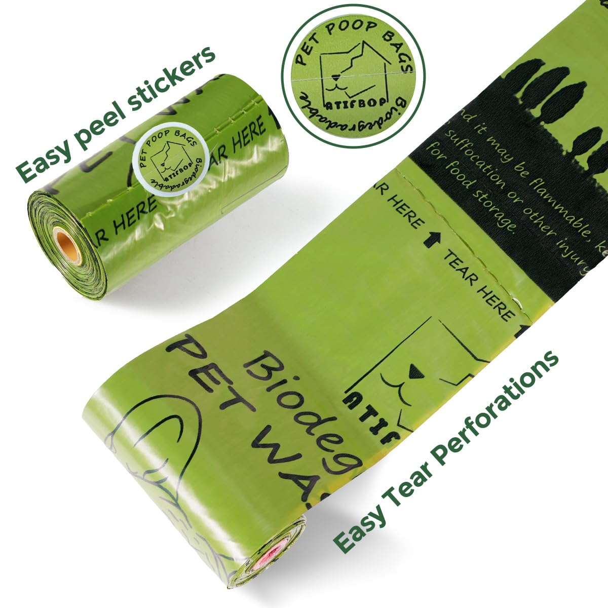 Q: What makes these dog poop bags easy to use?A: The ATIFBOP bags feature a light roll design that allows for easy tear-off and opening, making them convenient for pet parents on the go.