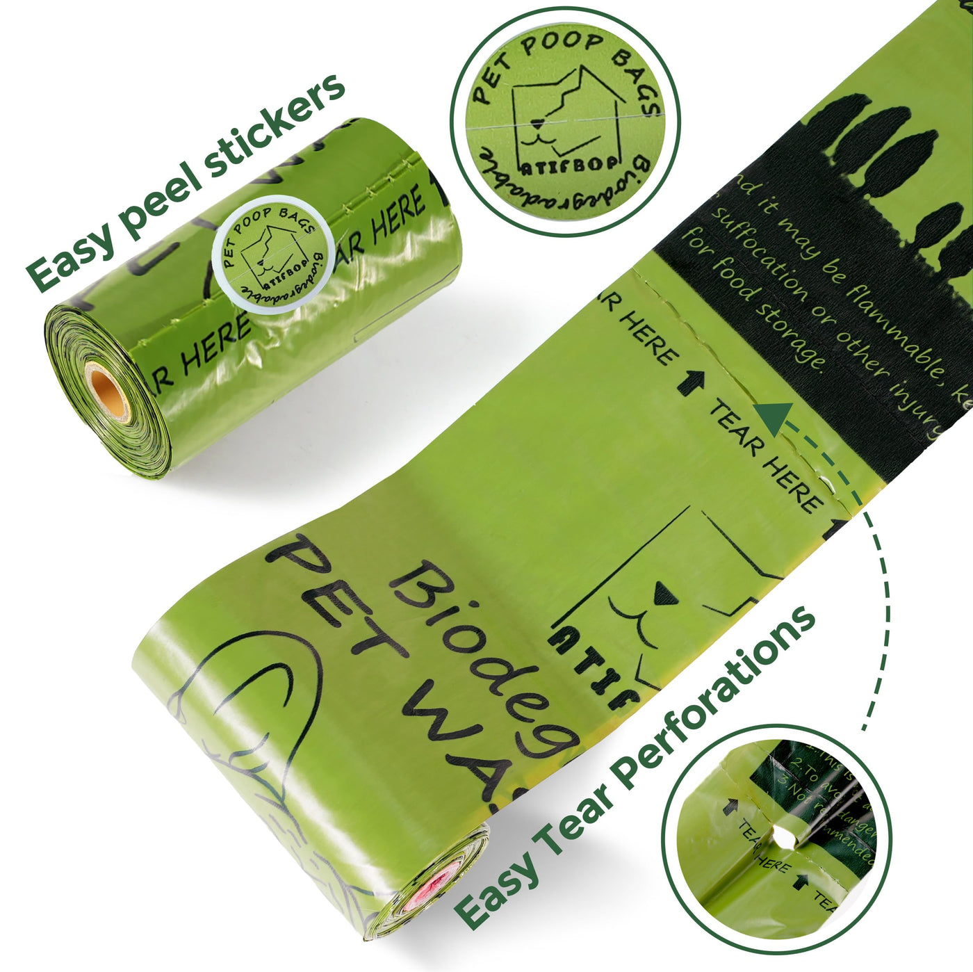 Q: Are these dog poop bags leak-proof?A: Yes, the ATIFBOP dog poop bags are leak-proof and thickened to prevent tearing, ensuring safe and secure disposal of pet waste.