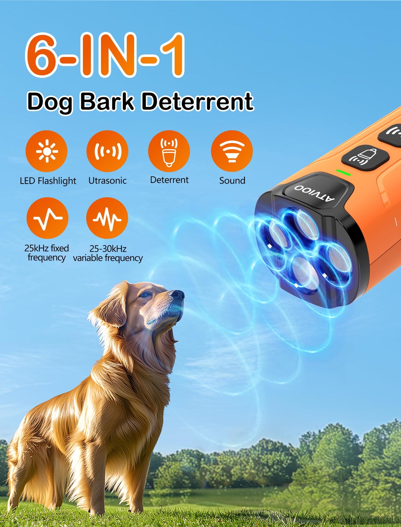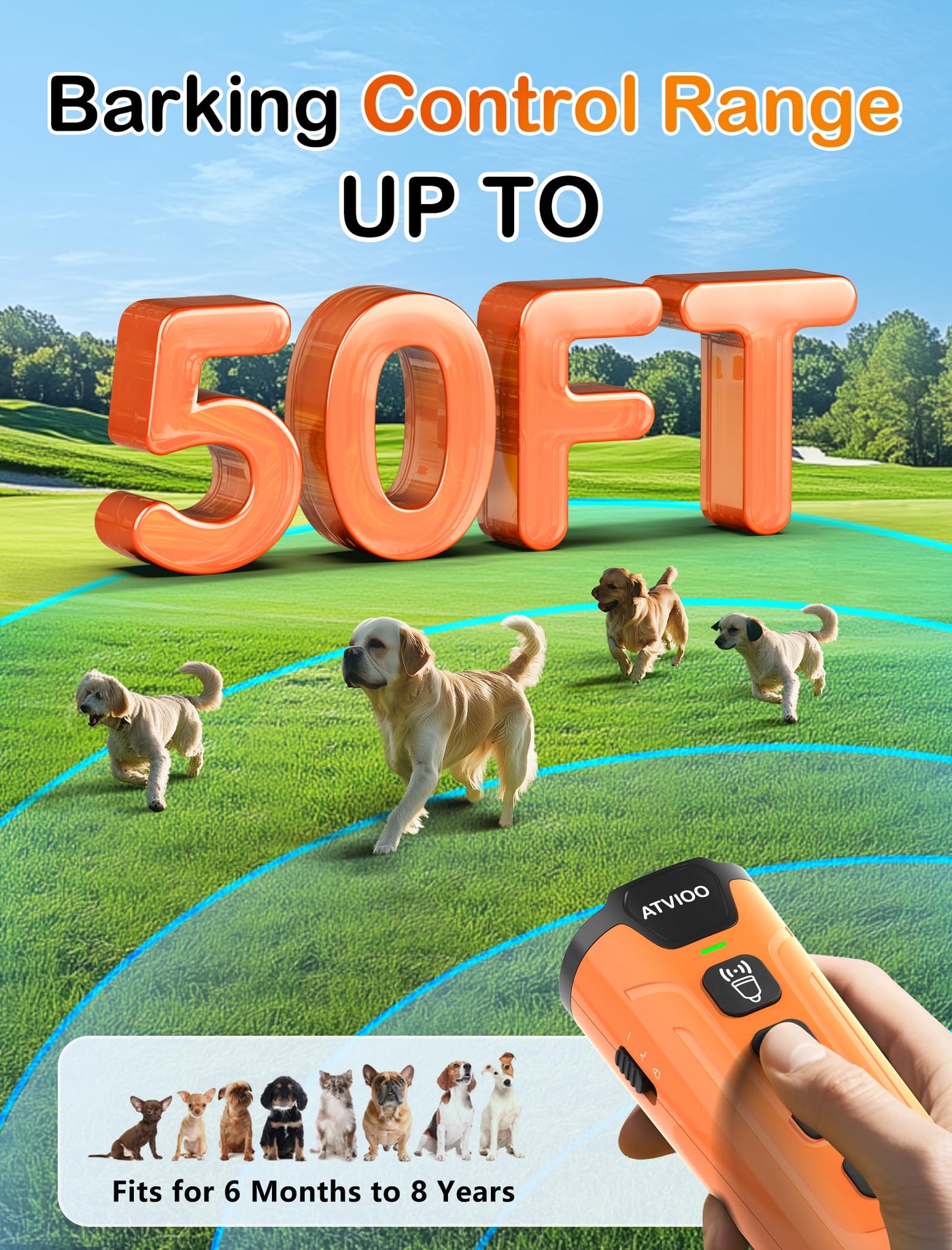Atvioo Ultrasonic Dog Bark Deterrent - Fast, Safe &Amp; Effective Behavior Trainingare You Tired Of Your Dogs Constant Barking, Digging, Scratching, Or Misbehaving During Walks? Say Goodbye To Those Challenges With The Atvioo Best Anti Barking Device! This Powerful, Humane Device Combines Advanced Ultrasonic Technology, Audible Sound, And A Deterrent Flash To Quickly Correct Unwanted Behaviors. Whether You'Re Training At Home Or On The Go, Atvioo Offers A Fast, Safe, And Effective Solution For A Well-Behaved Dog.3X Faster Behavior Correctionunlike Single-Emitter Models, The Atvioo No Bark Device Features 3 Ultrasonic Emitters That Deliver Results 3X Faster. With Dual-Frequency Technology (A Fixed 25Khz And A Variable 20-35Khz Range), It Effectively Stops Barking And Prevents Other Problematic Behaviors Like Digging, Biting, And Furniture Climbing. No More Endless Hours Of Trying To Correct Bad Behavior-Your Dog Will Learn Faster.Long Range &Amp; Compact Designsonic Bark Deterrents Effective Up To 50 Feet (15 Meters), Perfect For Outdoor Training. The Ergonomic Design And Wristband Make It Easy To Carry On Walks Or Training Sessions.Safety Firstbark Remote Features A Safety Lock, Quick-Response Button, And 8-Second Auto-Off To Protect Your Dogs Hearing. Safe For Puppies From 6 Months To 8 Years Old.Fast Charging &Amp; Long Battery Lifeultrasonic Dog Repellent Charges In 2 Hours And Lasts Up To 60 Days On Standby. Includes An Led Flashlight For Night Walks And A Flash Mode To Deter Aggressive Dogs.Peace Of Mind For You And Your Dogwith Atvioo Antibarking Device For Dogs, You Can Effectively Train Your Dog And Enjoy A Peaceful Home And Walks. Start Training Today For A Well-Behaved Dog In No Time!