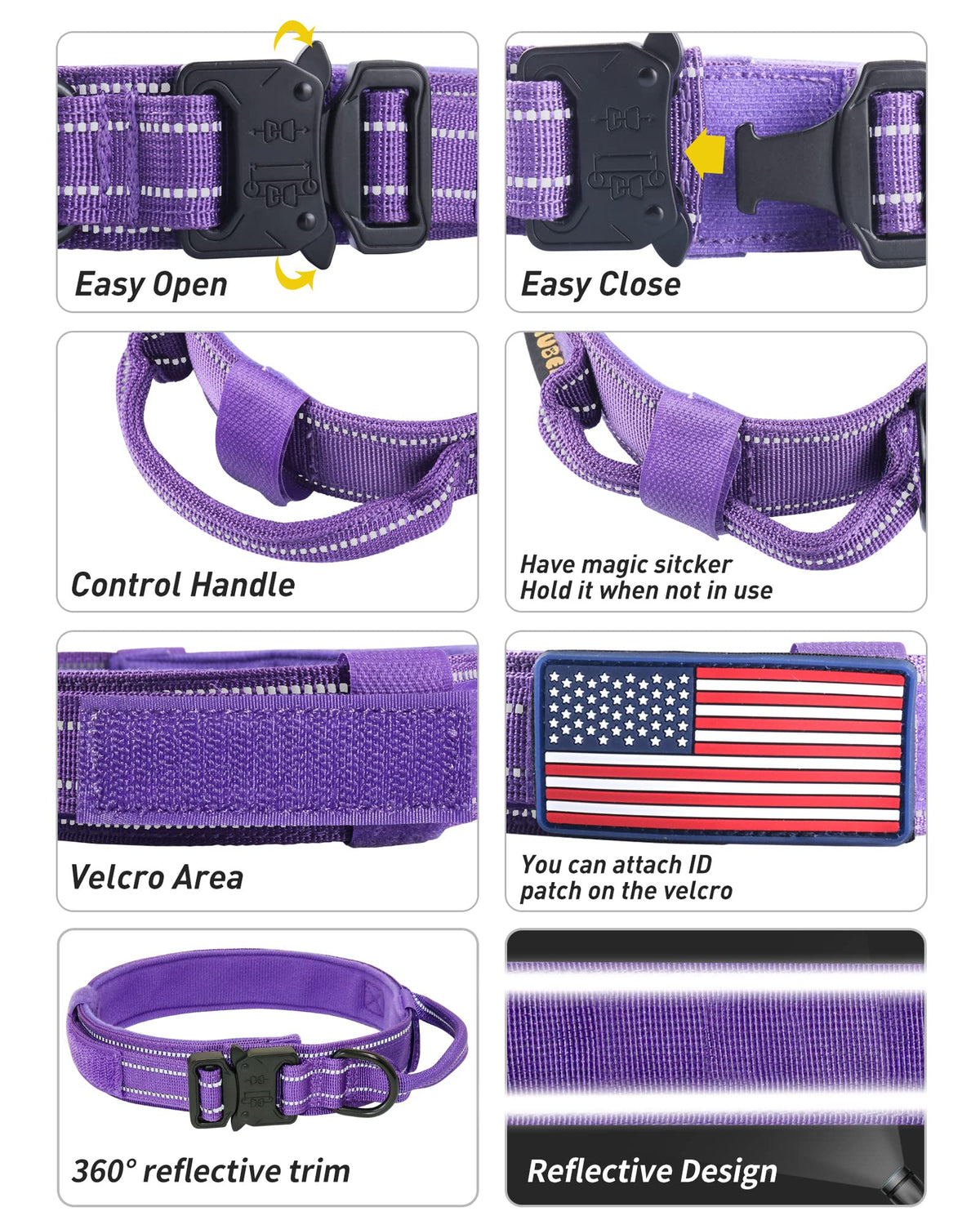 Aubell Reflective Dog Collar, Tactical Dog Collar For Large Dogs, Heavy Duty Dog Collars With Control Handle And Metal Buckle Fo