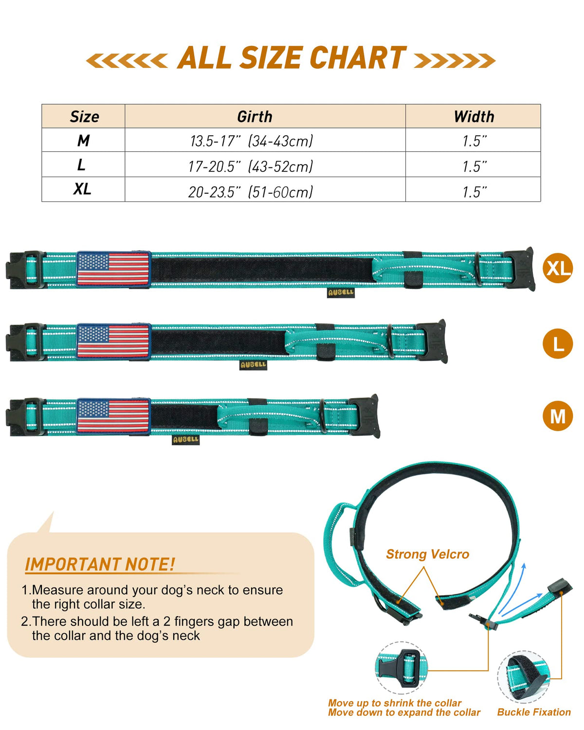 Aubell Tactical Dog Collar, Reflective Dog Collar For Extra-Large Dogs, Adjustable Nylon Dog Collar With Handle And Heavy Duty B