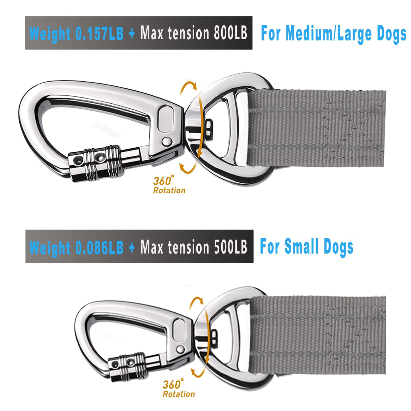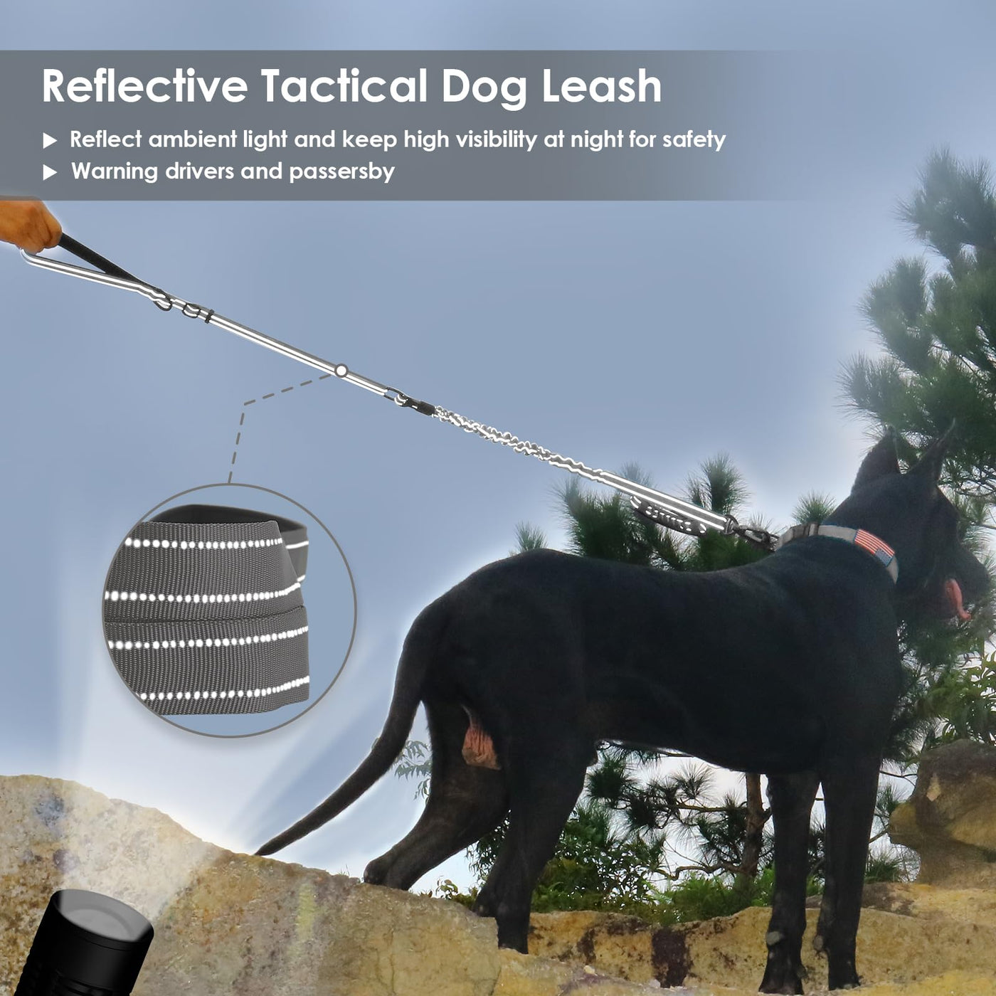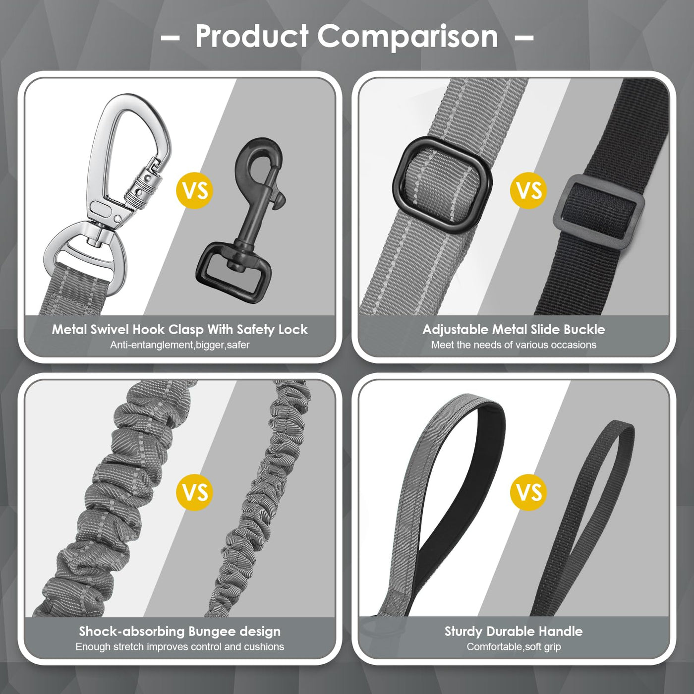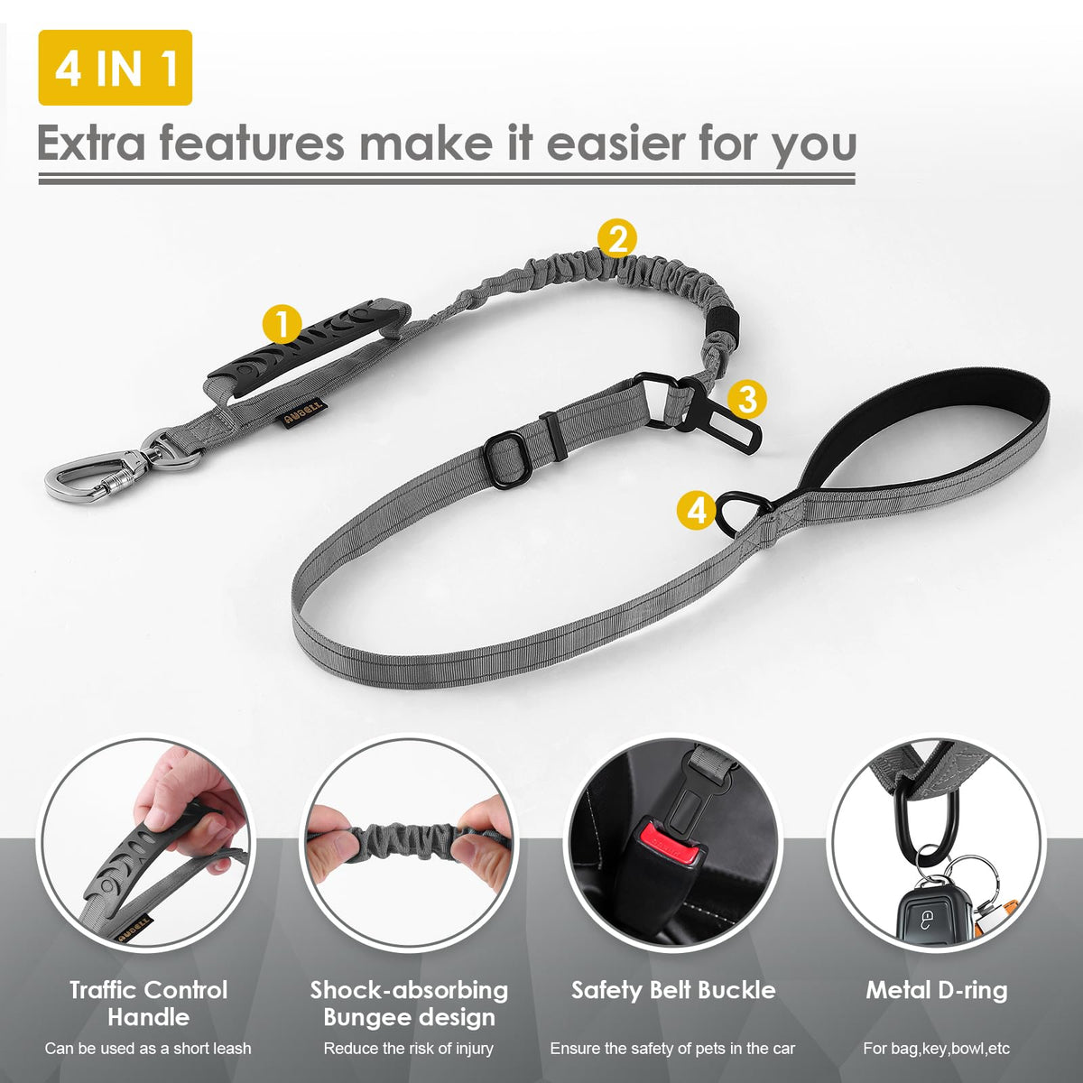 Heavy Duty Dog Leash For Large Dogs ---Premium Quality And Durable Materials: Our Adjustable Length Dog Leash For All Medium, Large And Small Dog Breeds.Very Sturdy And Easy To Use, Comfortable Double Handle Handles Are Padded With Soft Neoprene And Give You Complete Comfort When Walking Your Dog.It Provides Multiple Functions,Great Reflections At Night,4-6Ft Adjustable Strong Dog Leash,Nice Easy Adjustment For Proper Fit,With Seat Belt,Seatbelt,Car Harness.***The Stretchy Bungee Section Takes A Lot Of The Stress Of A Puller Or Quick Bolt And Lessens The Jerk To Your Arm. It Also Provides Some Resistance To The Dog Before The Jarring Stop On Most Leashes. ***The Handle Of The Leash Is Pretty Comfortable And There Is A Fabric Loop Near It Which Can Be Slid Upwards To Keep The Loop From Easily Sliding Off Your Wrist. ***Stretchable Bungee Helps To Absorb Shock Of Quick Movement When Used With Energetic And Active Dogs, Reduce The Feeling Of Being Pulled. ***Adjustable Length Gives Your Dogs More Room For Activities.