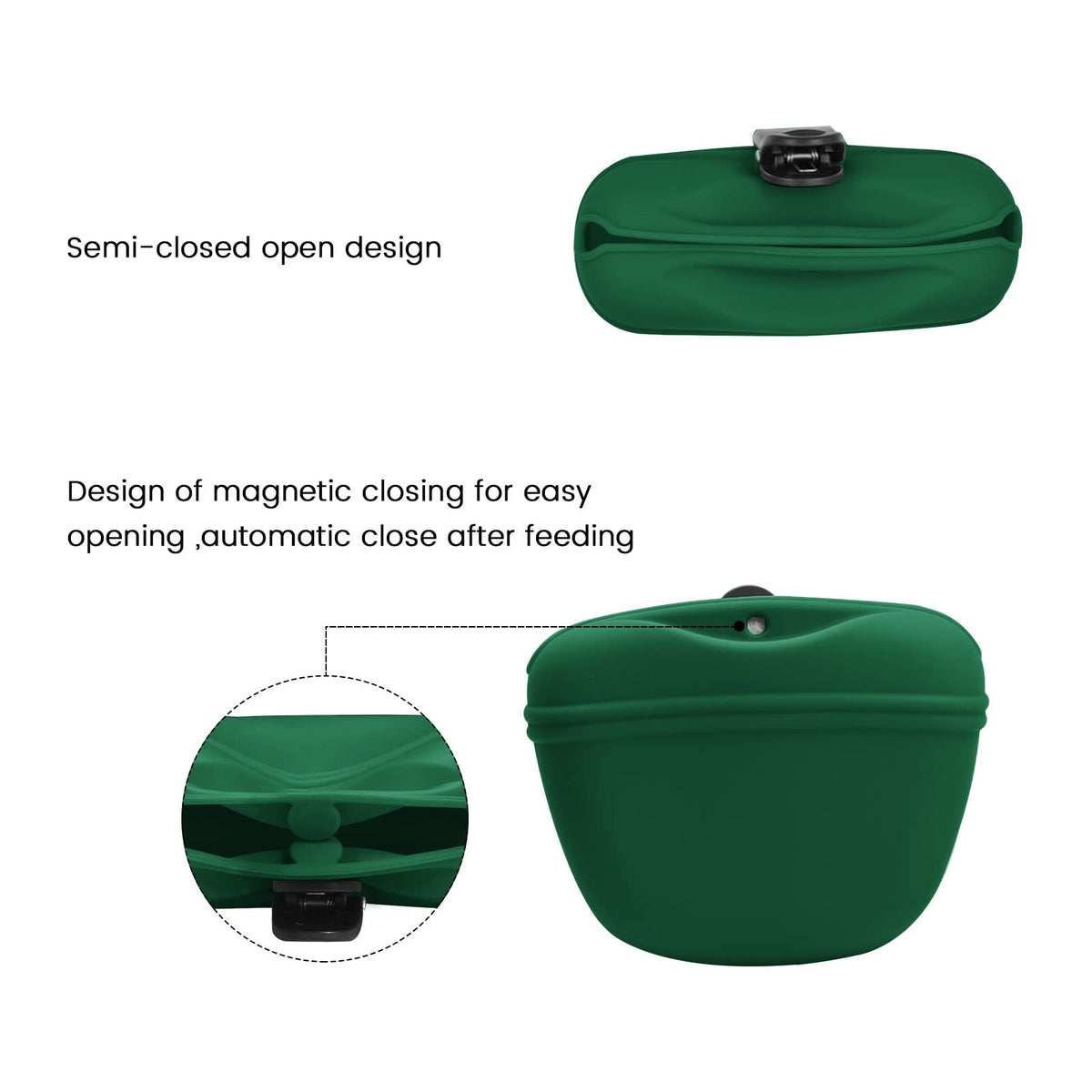 AUDWUD - Silicone Dog Treat Pouch - Clip on Portable Training Container - Convenient Magnetic Buckle Closing and Waist Clip - BP