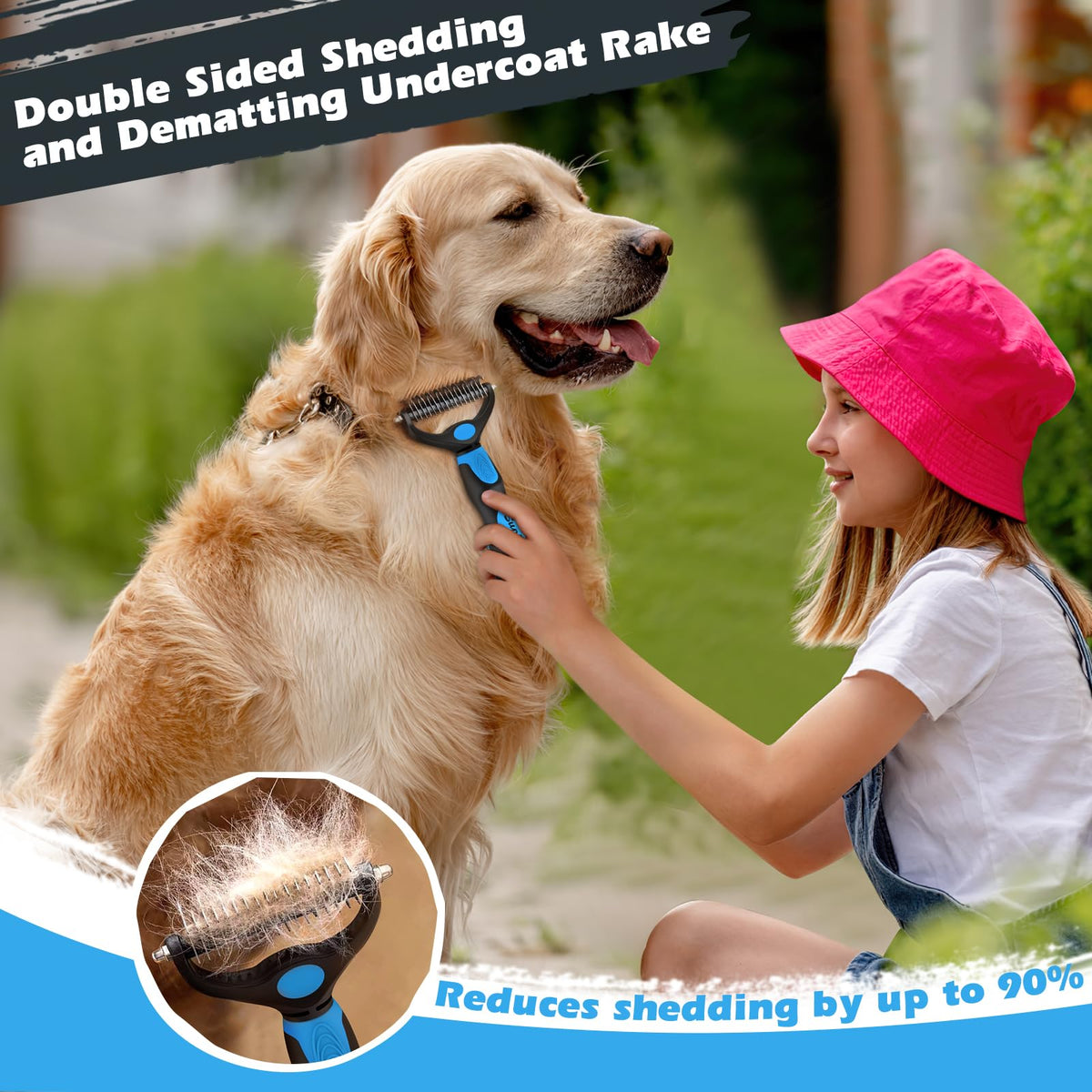 ?Dematting and Deshedding Tools?Deshedding dog brush makes it easy to trim stubborn tangled hair. Dog hair brush quickly removes loose hair dander and residual dirt. The perfect deshedding solution for cats dogs of all fur types