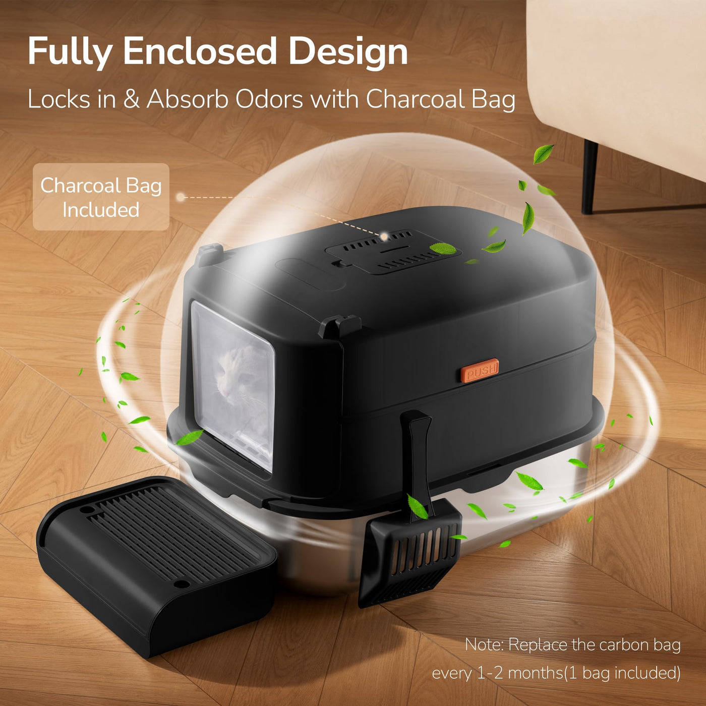 Transform Your Cats Litter Experience With The Aupures Fully Enclosed Stainless Steel Cat Litter Box. Crafted With Premium Stainless Steel And A Detachable Abs Lid, This Xlarge Cat Litter Box Is Designed To Meet The Needs Of Both You And Your Pet. Unlike Traditional Plastic Litter Box, Our Xl Stainless Steel Litter Box Offers Strength And Longevity. Its Rust-Proof, Stain-Resistant, And Wont Retain Unpleasant Odors. The High-Quality Construction Is Designed To Withstand Even The Most Use, Making It Ideal For Multi-Cat Households. The Fully Enclosed Design Of The Aupures Large Covered Cat Litter Box Provides Your Cat With A Comfortable, Quiet Space, Helping Them Feel Safe. The Detachable Abs Lid Ensures Easy Access For Cleaning, While The Sleek Design Minimizes Litter Scatter, Keeping Your Home Tidy. The Smooth Surface Of The Aupures Litter Box Prevents Litter From Sticking, Making Cleaning Effortless. A Simple Wipe-Down Is All It Takes To Maintain A Clean Space For Your Pet. Plus, The Stainless Steel Prevents The Build-Up Of Odors, Ensuring A Healthier Environment For Your Cat. With Generous Dimensions, This Stainless Steel Litter Box With Cover Is Spacious Enough For Even The Largest Of Cats. Whether You Have A Maine Coon Or Multiple Cats, Your Feline Friends Will Have Ample Room To Move, Dig, And Cover Their Litter Comfortably. The High Sides Of The Box And Enclosed Design Also Help Contain Messes, Reducing Litter Tracking Outside The Box. Why Choose Aupures? Durability: Built To Last With Premium Stainless Steel And A Strong Abs Lid. Easy To Clean: Non-Stick Surface Makes Maintenance Simple. Spacious & Comfortable: Ample Space For Larger Cats Or Multi-Cat Households.