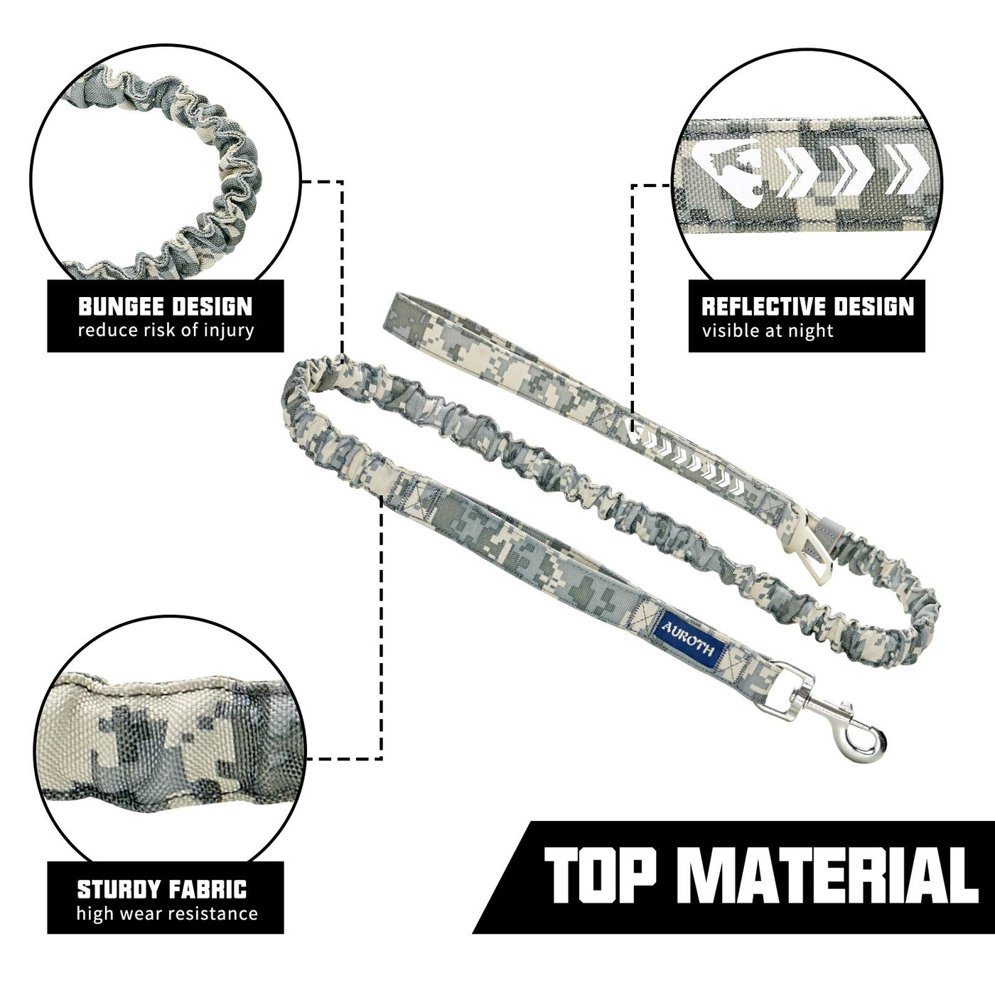 Auroth Dog Leash Large Dogs, Heavy Duty Dog Leash Bungee, No Pull Dog Leash For Shock Absorption, Grey Camo Dog Training Leashes