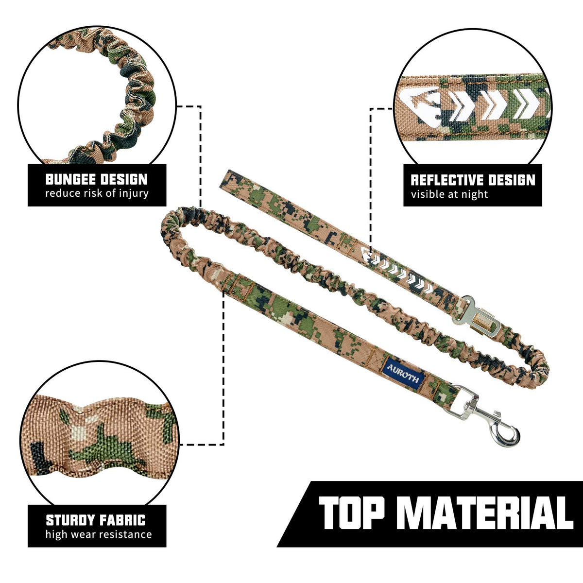 Auroth Dog Leash Large Dogs, Heavy Duty Dog Leash Bungee, No Pull Dog Leash For Shock Absorption, Woodland Camo Dog Training Lea